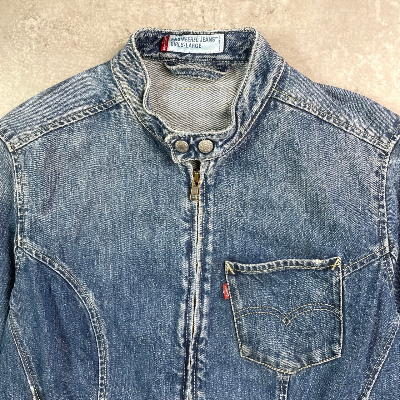 ■00年代 Levi's ENGINEERED JEANS ユーロリーバイス エンジニアードジーンズ 立体裁断 デニムジャケット レディースM相当 古着 90s VINTAGE ヴィンテージ トラッカージャケット【デニムジャケット】/ブルー