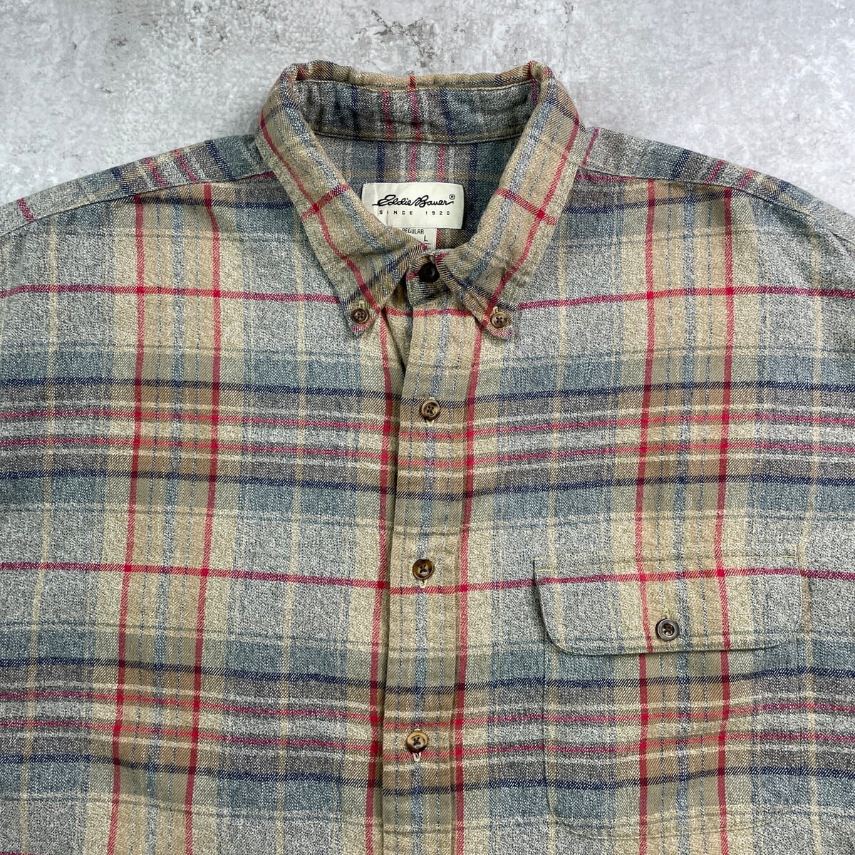 ■90年代 Eddie Bauer エディーバウアー タータンチェックシャツ ネルシャツ メンズXL相当 古着 90s VINTAGE ヴィンテージ アウトドア アメカジ B.D ボタンダウンシャツ 胸ポケット付き レッド ベージュ ネイビー【長袖シャツ】/マルチカラー
