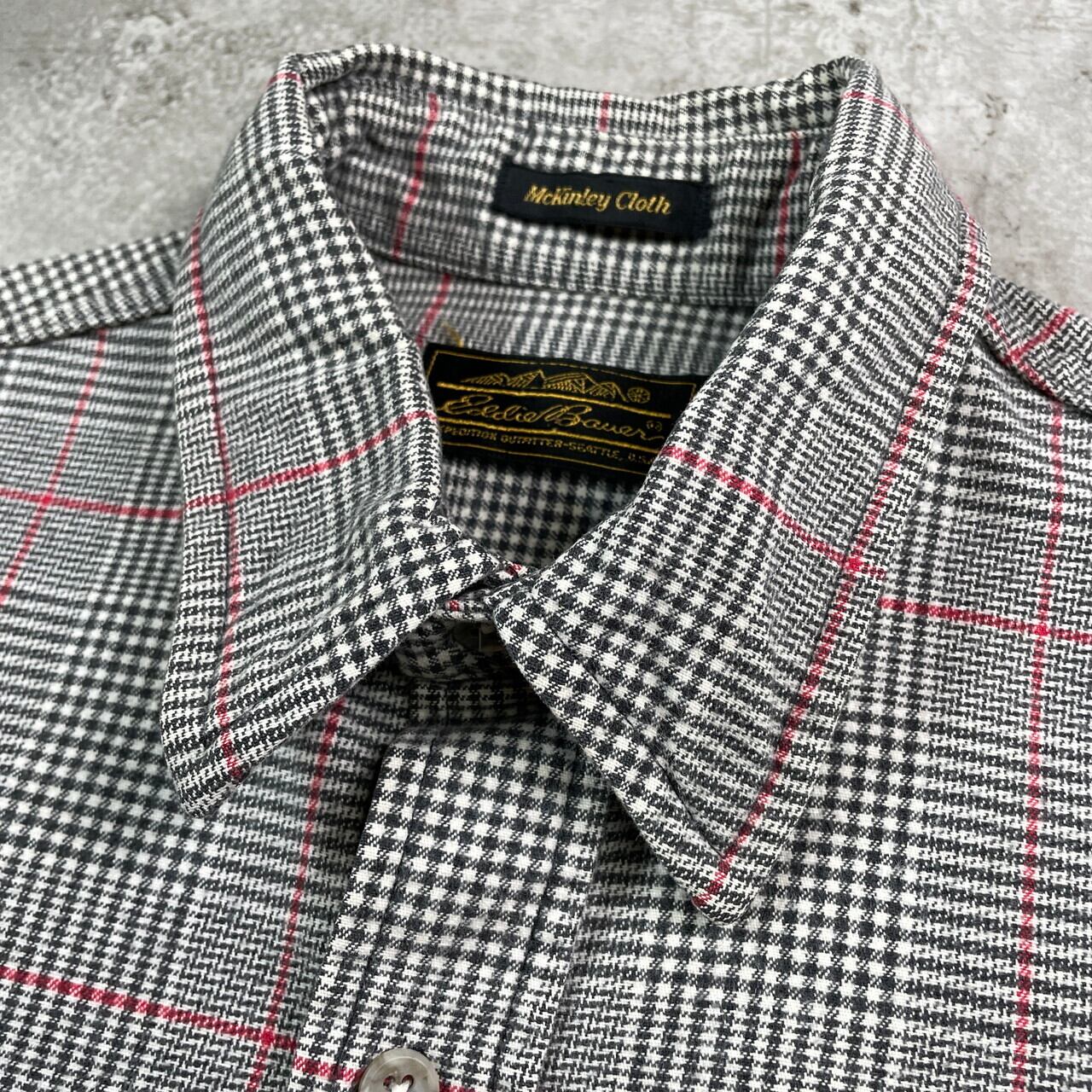 ■80~90年代 Eddie Bauer エディーバウアー グレンチェック フランネルシャツ メンズM相当 古着 80s 90s ヴィンテージ VINTAGE 黒タグ アウトドア アメカジ ブラック ホワイト レッド 黒 白 赤【長袖シャツ】/マルチカラー