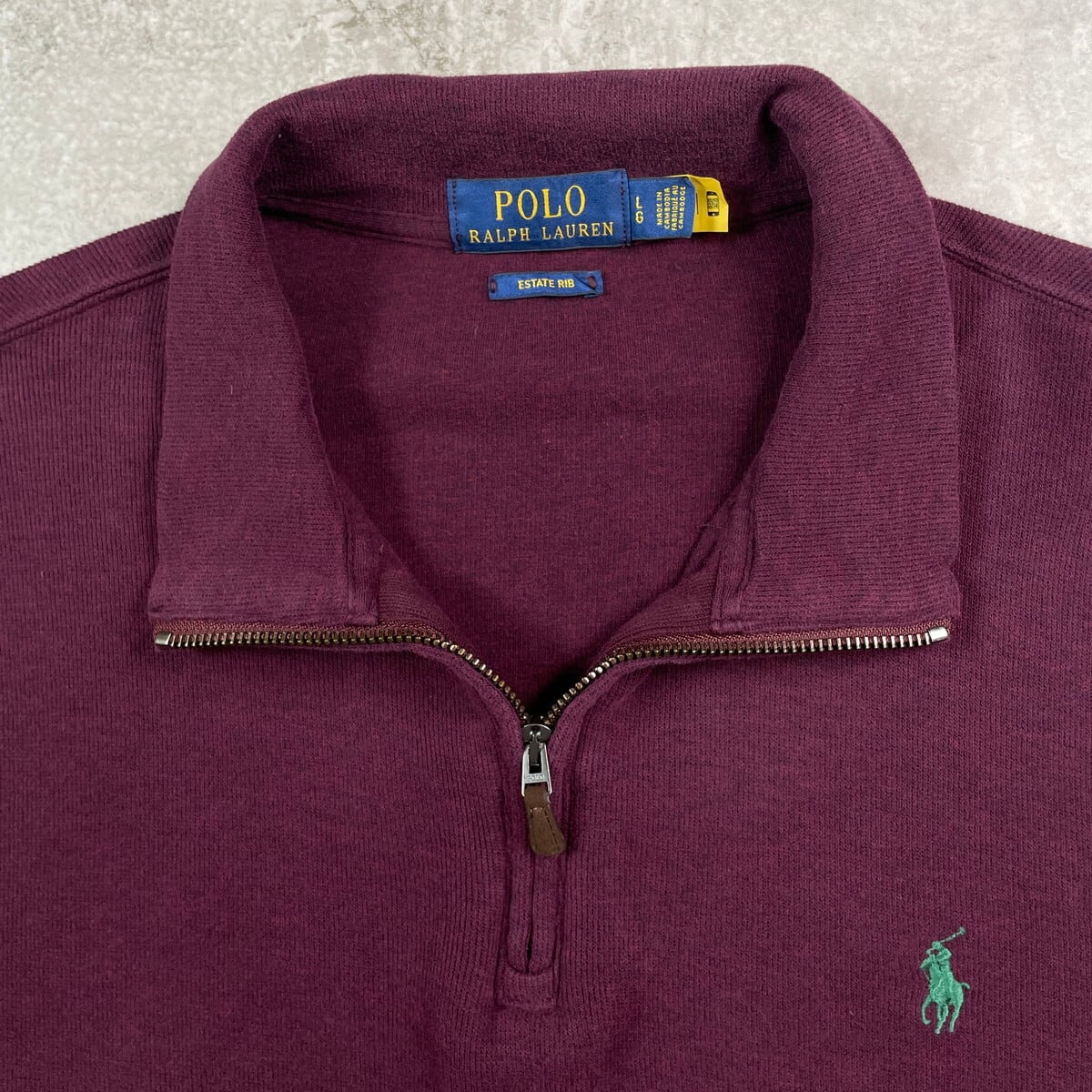 POLO RALPH LAUREN ポロラルフローレン ハーフジップニット メンズL 古着 ESTATE RIB セーター ワンポイントロゴ刺繍 インディアンレッド【ニットセーター】/ワインレッド