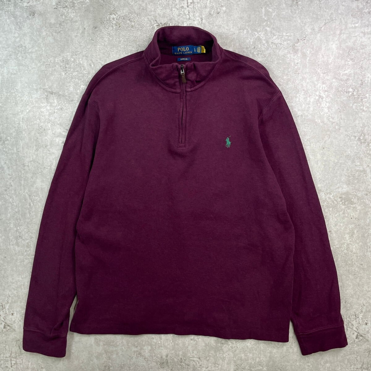 ■POLO RALPH LAUREN ポロラルフローレン ハーフジップニット メンズL 古着 ESTATE RIB セーター ワンポイントロゴ刺繍 インディアンレッド【ニットセーター】/ワインレッド