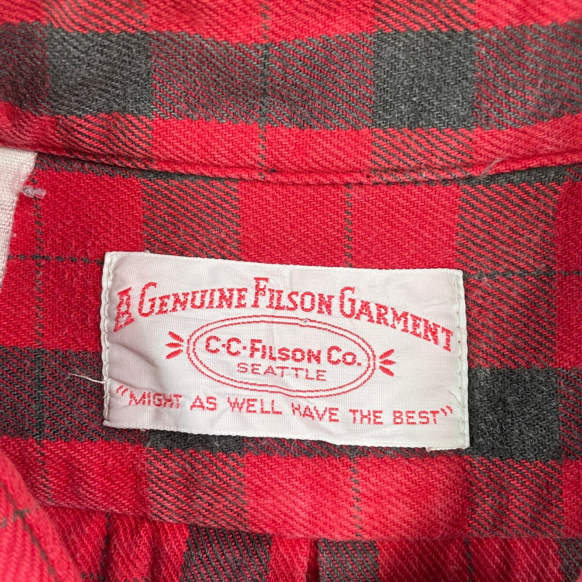 90年代 USA製 FILSON フィルソン チェック ヘビーネルシャツ メンズXL 古着 90s VINTAGE ヴィンテージ アメカジ ダブルポケット 赤色 チャコールグレー【長袖シャツ】/レッド