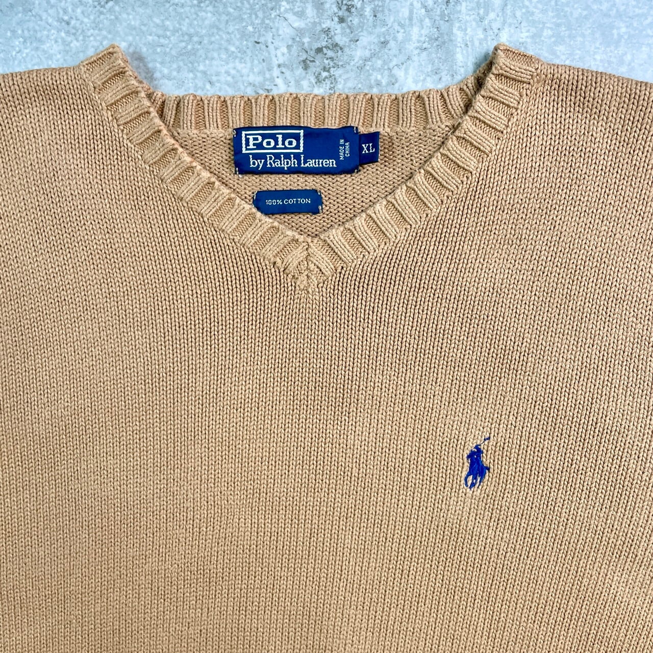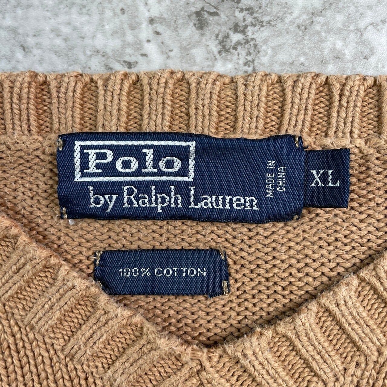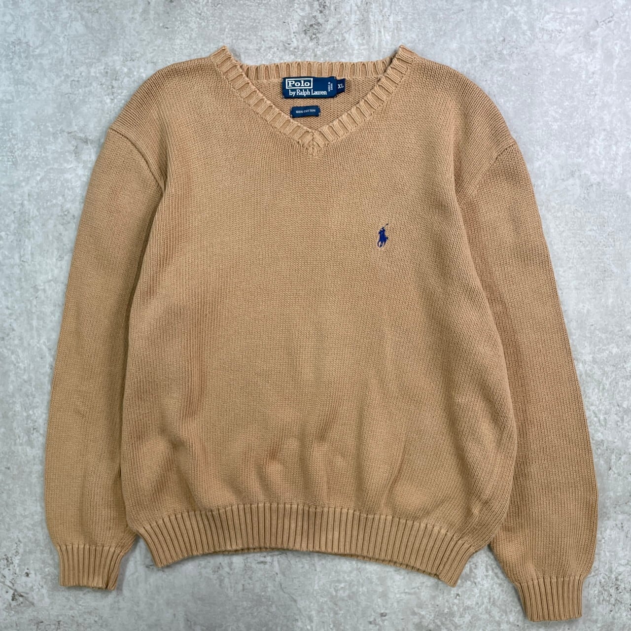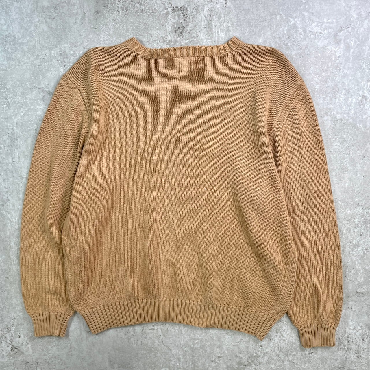 90年代 Polo by Ralph Lauren ポロバイラルフローレン コットンニットセーター メンズL相当 古着 90s ヴィンテージ VINTAGE ワンポイントロゴ刺繍【ニットセーター】/ベージュ