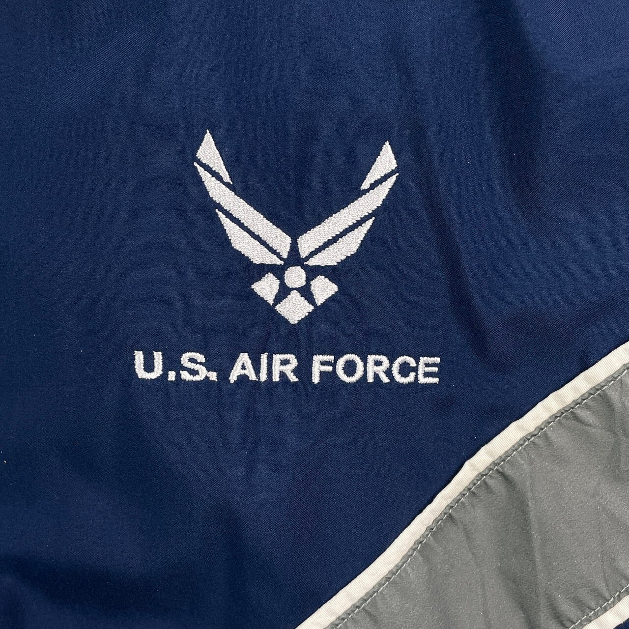 00年代 米軍実品 U.S.AIR FORCE PTU ミリタリー ナイロンジャケット MEDIUM LONG メンズL相当 古着 00s VINTAGE ヴィンテージ USAF リフレクターライン トレーニングウェア 紺色【ナイロンジャケット】/ネイビー