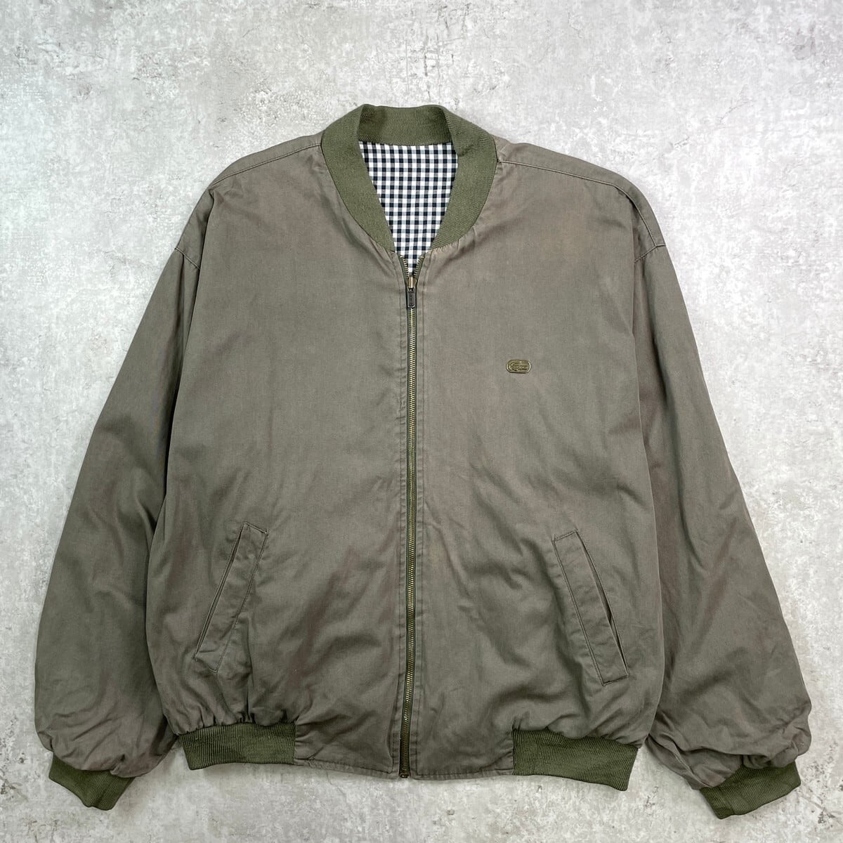 ■80~90年代 LACOSTE ラコステ チェック柄 リバーシブルジャケット メンズXL相当 古着 80s 90s VINTAGE ヴィンテージ ネイビー×ホワイト【ブルゾン・ジャケット】/カーキグリーン
