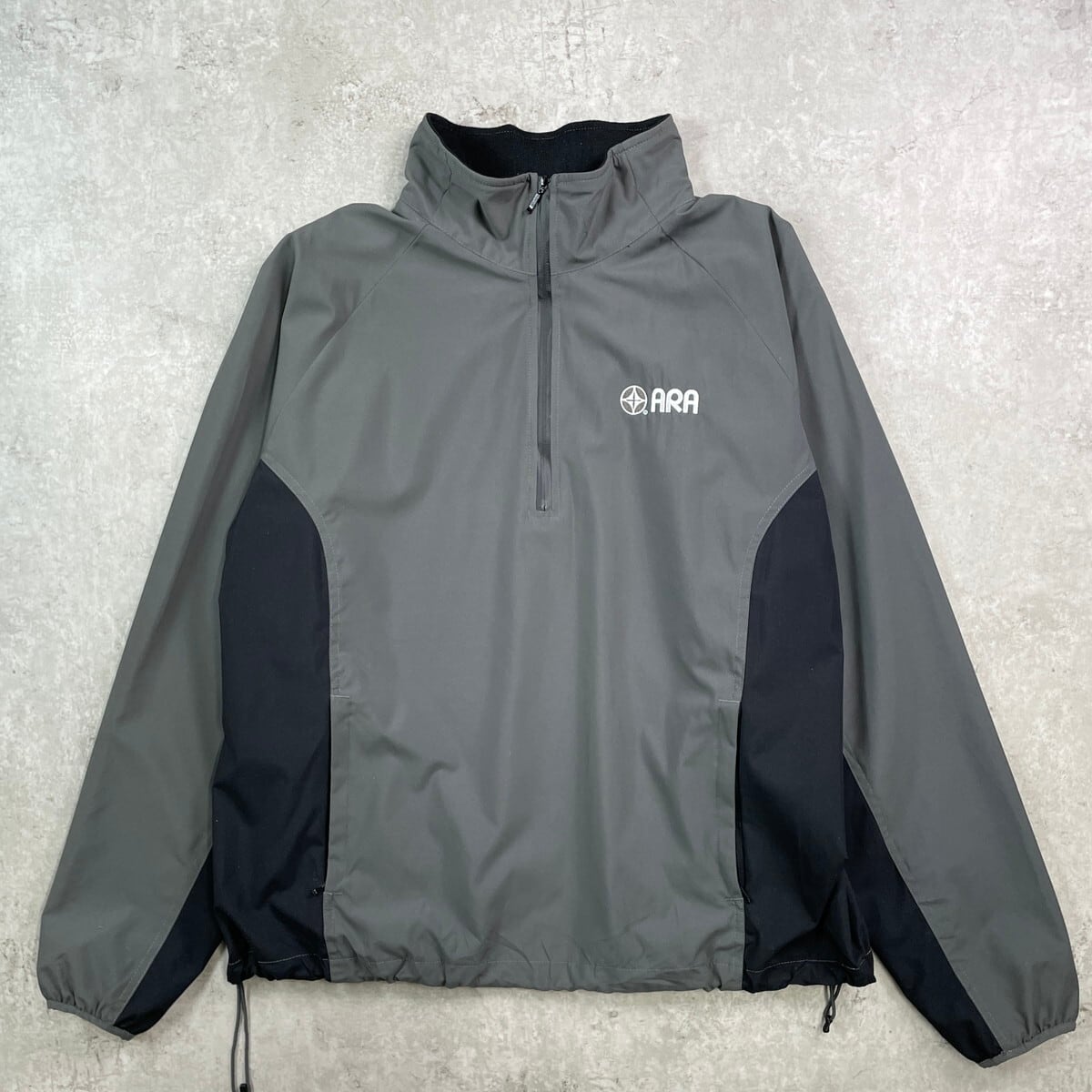 ■LANDS' END ランズエンド ワンポイント企業ロゴ刺繍 ハーフジップジャケット メンズXL相当 古着 ラグランスリーブ メッシュライナー ドローコード付き バイカラー 灰色 ブラック【アウトドアジャケット】/グレー