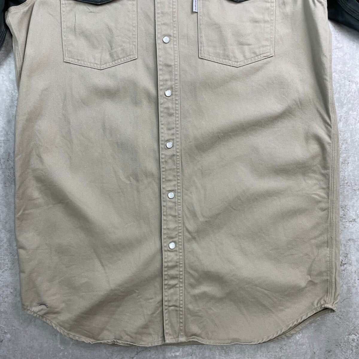 ■Carhartt カーハート ウエスタンシャツ メンズL 古着 ダブルポケット スナップボタン ツートンカラー ベージュ×ブラック【長袖シャツ】/ベージュ