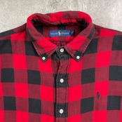 RALPH LAUREN ラルフローレン バッファローチェック ネルシャツ メンズM 古着 B.D. ボタンダウンシャツ ワンポイントロゴ刺繡 レッド×ブラック【長袖シャツ】/マルチカラー