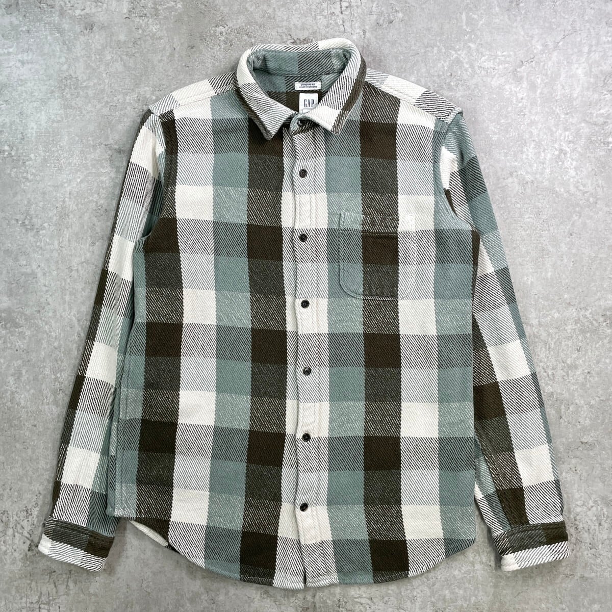 GAP ギャップ ブロックチェック ヘビーネルシャツ メンズM 古着 アメカジ 胸ポケ付き ホワイト×オリーブグリーン×ミントグリーン【長袖シャツ】/マルチカラー