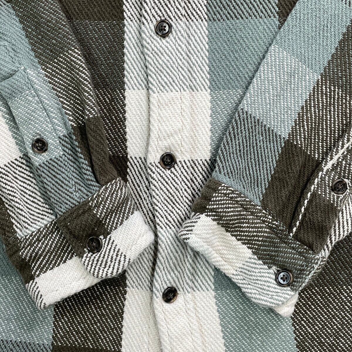 ■GAP ギャップ ブロックチェック ヘビーネルシャツ メンズM 古着 アメカジ 胸ポケ付き ホワイト×オリーブグリーン×ミントグリーン【長袖シャツ】/マルチカラー
