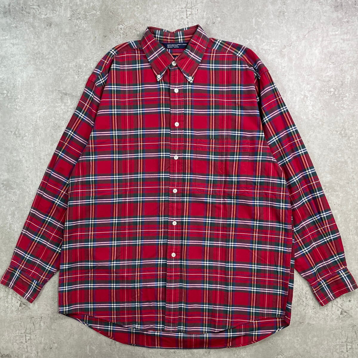 90年代 NAUTICA ノーティカ チェックシャツ メンズXL相当 古着 90s ヴィンテージ VINTAGE アメカジ B.D. ボタンダウンシャツ ワンポイントロゴ刺繡 レッド ネイビー グリーン ホワイト イエロー【長袖シャツ】/マルチカラー