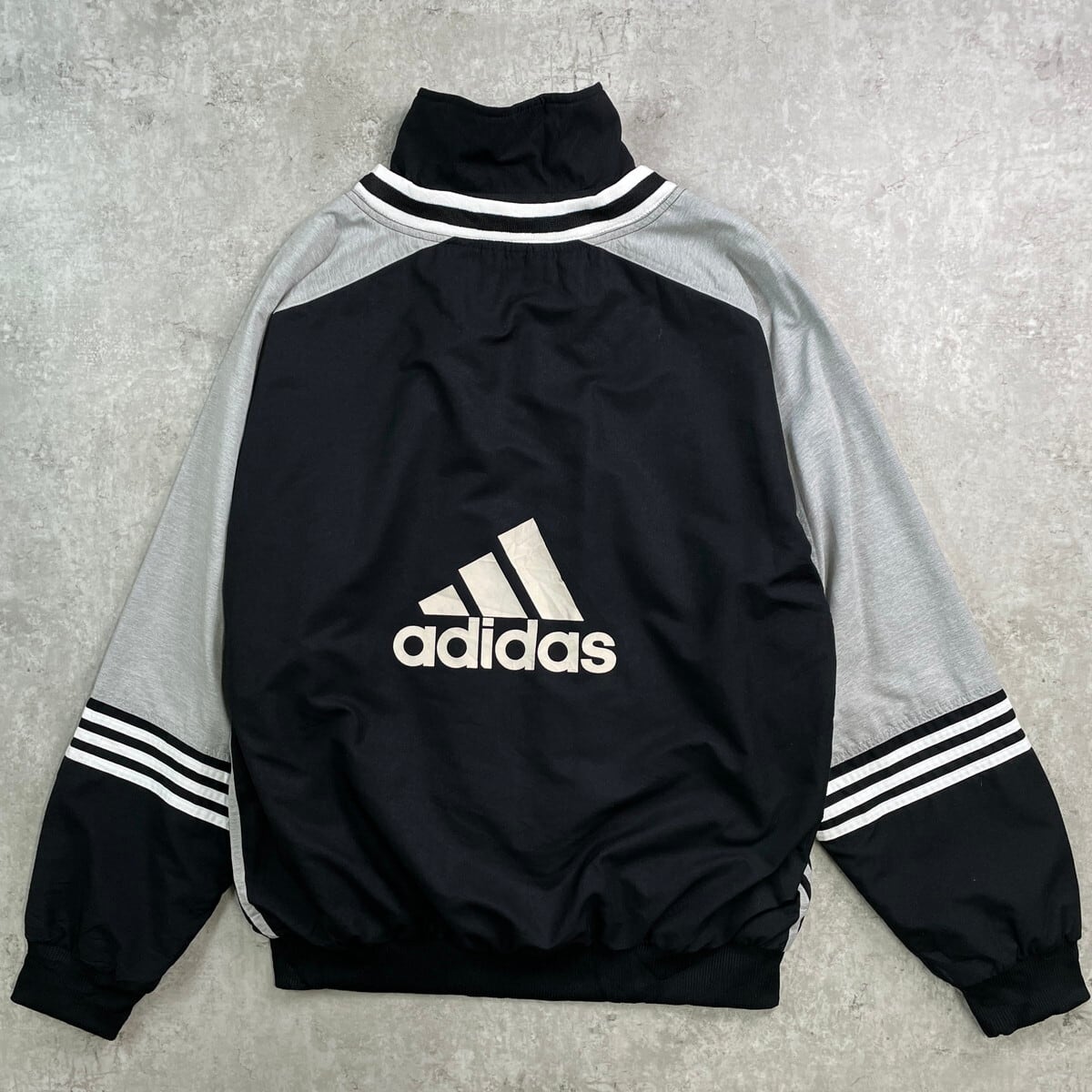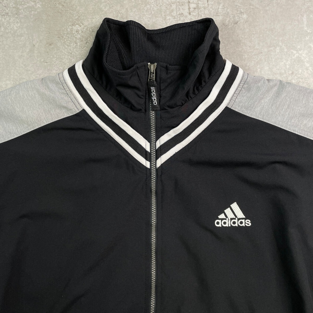 90年代 adidas アディダス トラックジャケット パフォーマンスロゴ メンズL相当 古着 90s ヴィンテージ VINTAGE ブラック グレー ホワイト【ナイロンジャケット】/マルチカラー