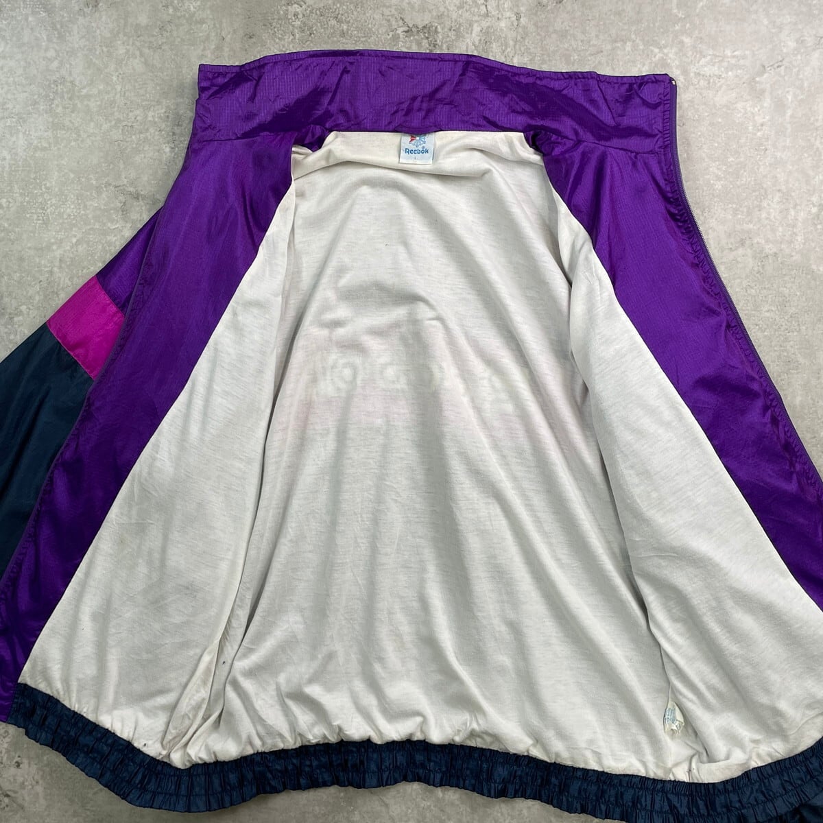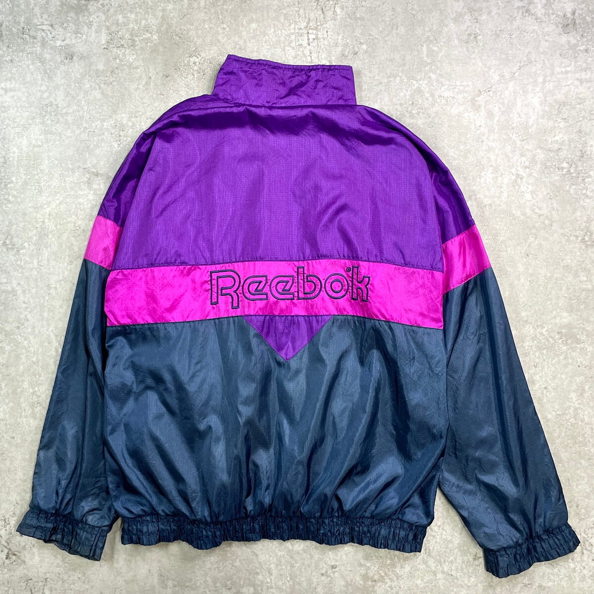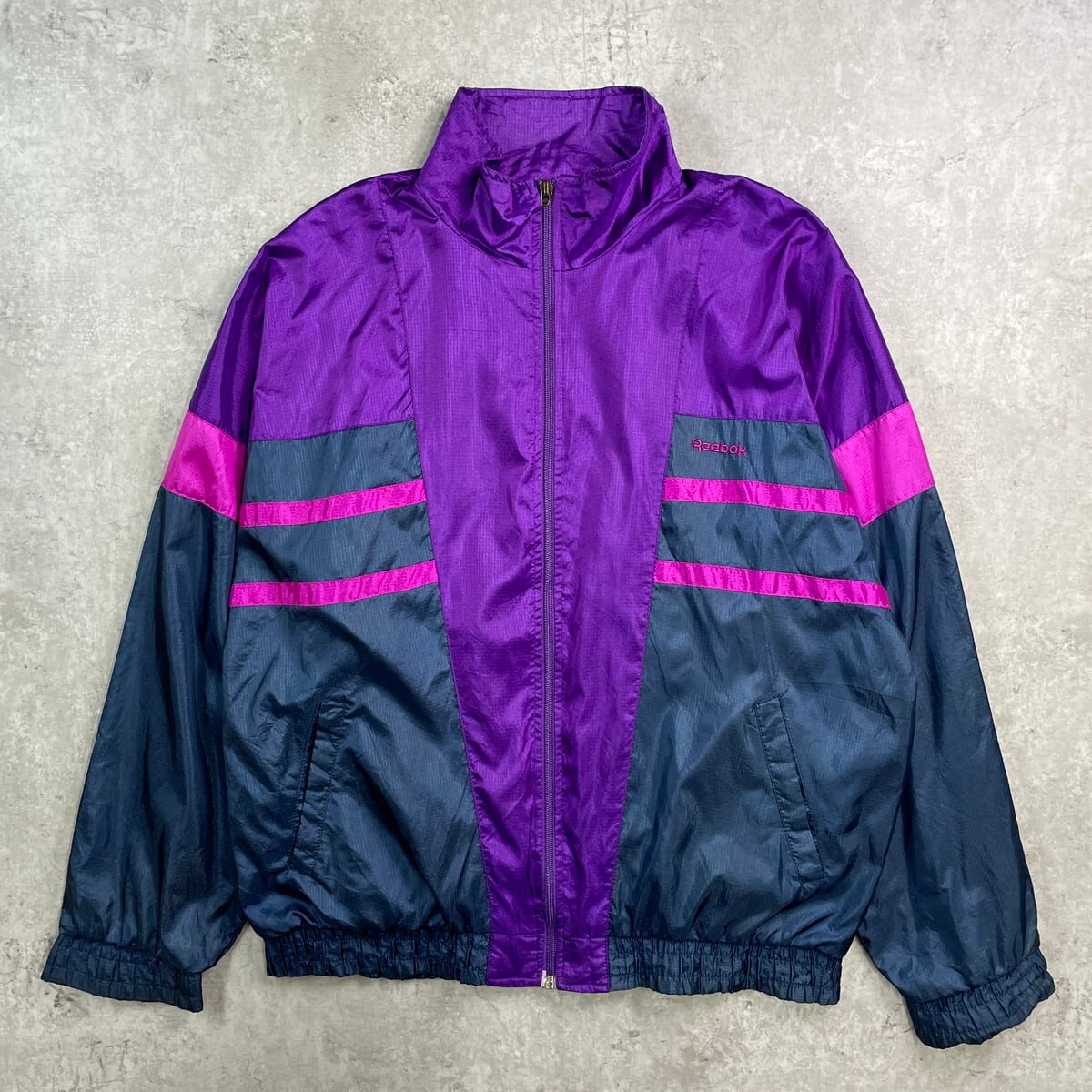 90年代 Reebok リーボック ナイロンジャケット ロゴ刺繍 メンズXL相当 古着 90s ヴィンテージ VINTAGE 切り替えデザイン 紫色 ネイビー【ナイロンジャケット】/パープル