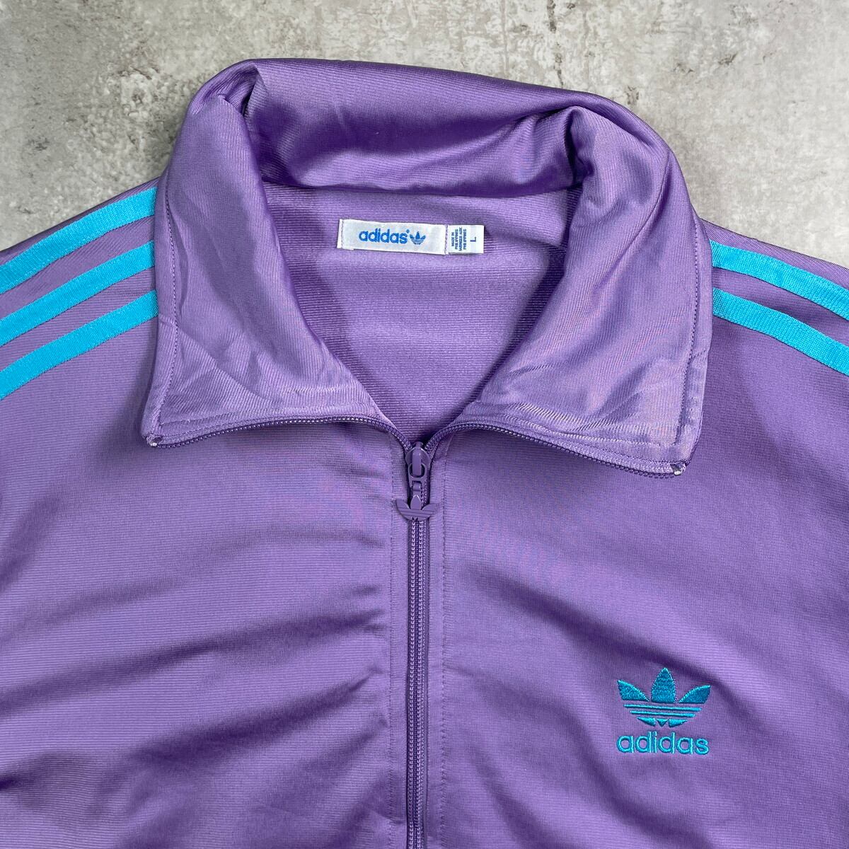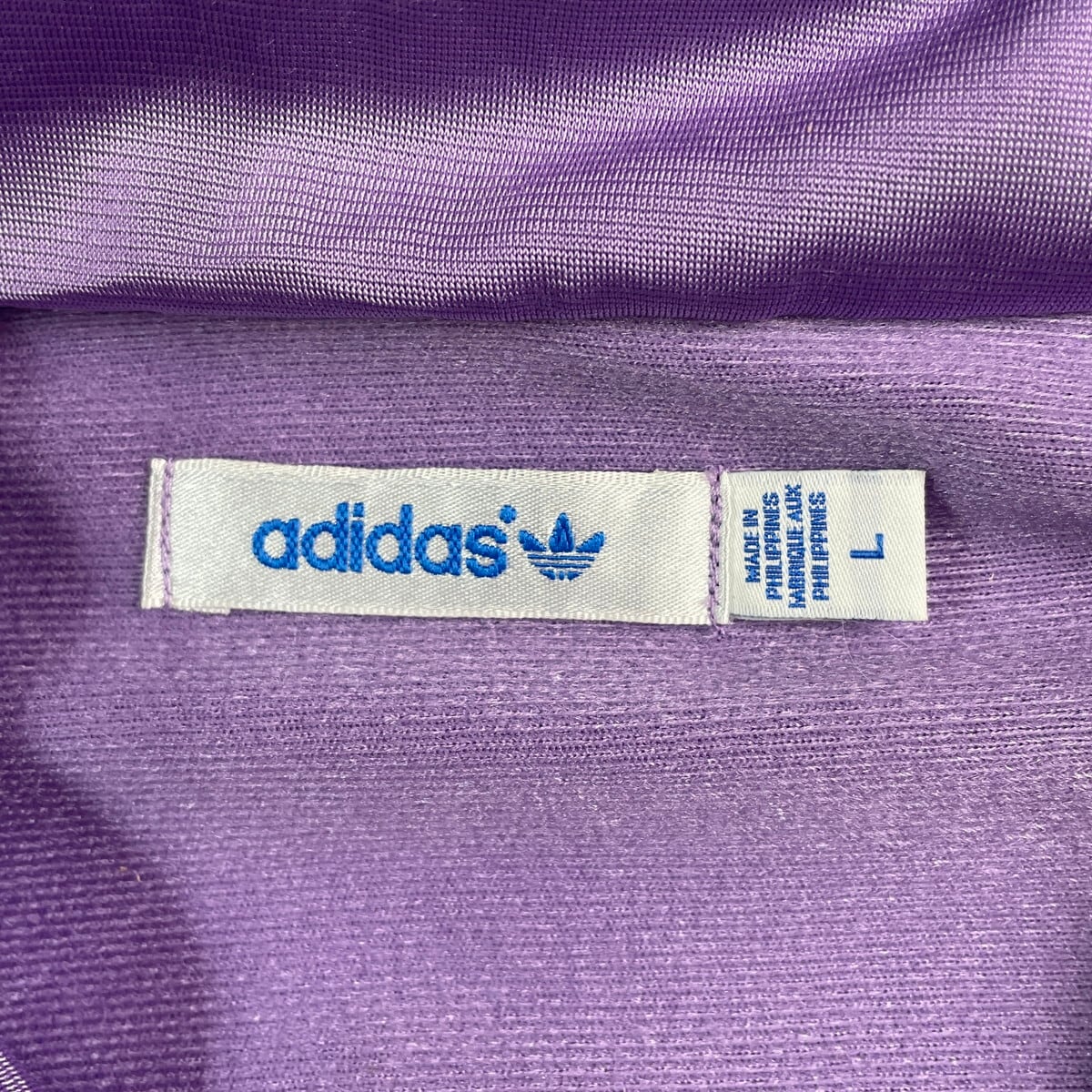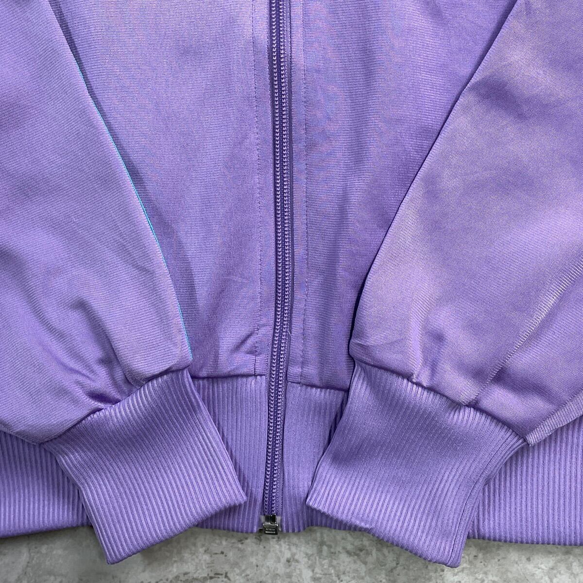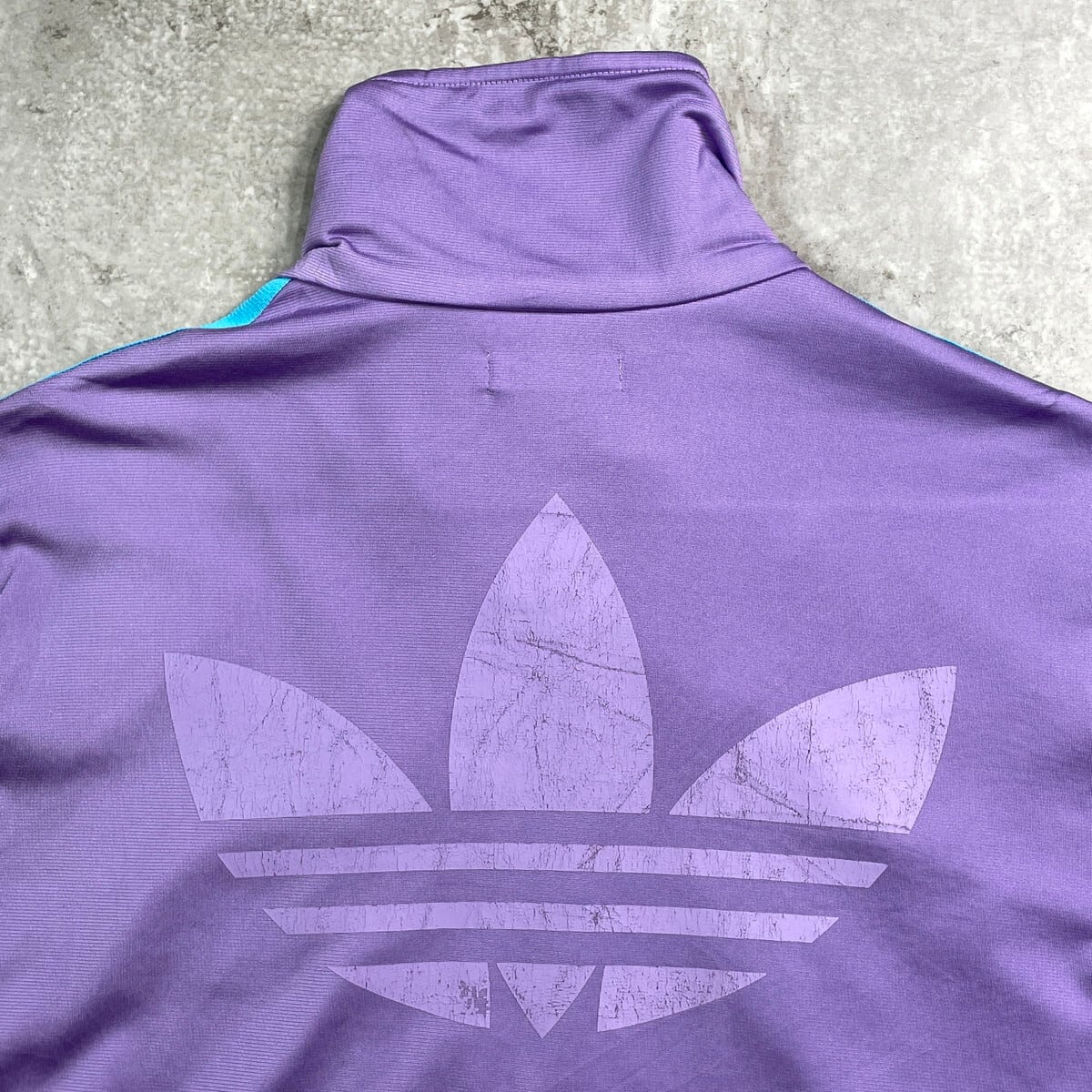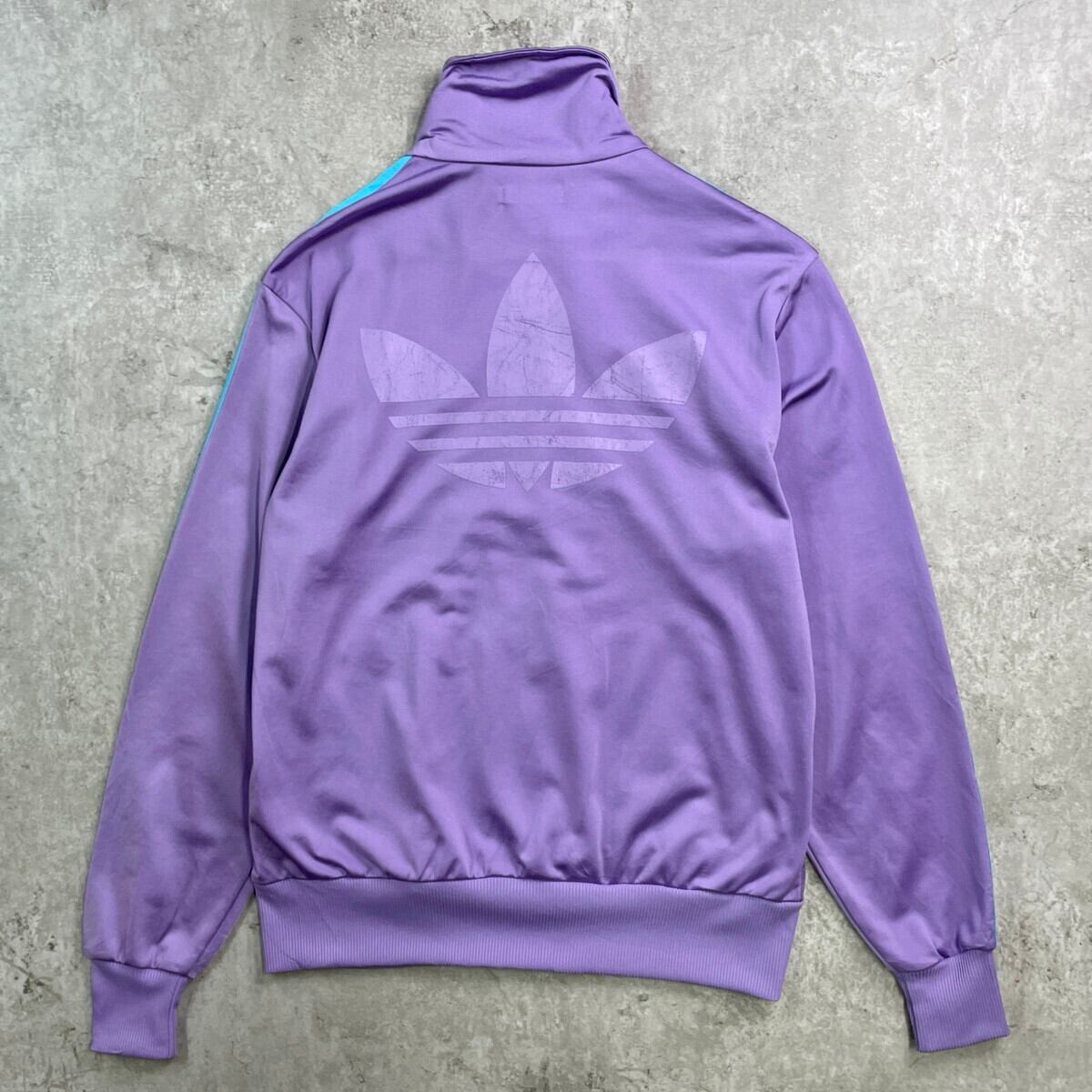 adidas アディダス トラックジャケット トレフォイルロゴ刺繍 ジャージ メンズM相当 レディースL相当 古着 ハイネック バックプリント ライトパープル×ライトブルー【ジャージ・トラックジャケット】/パープル
