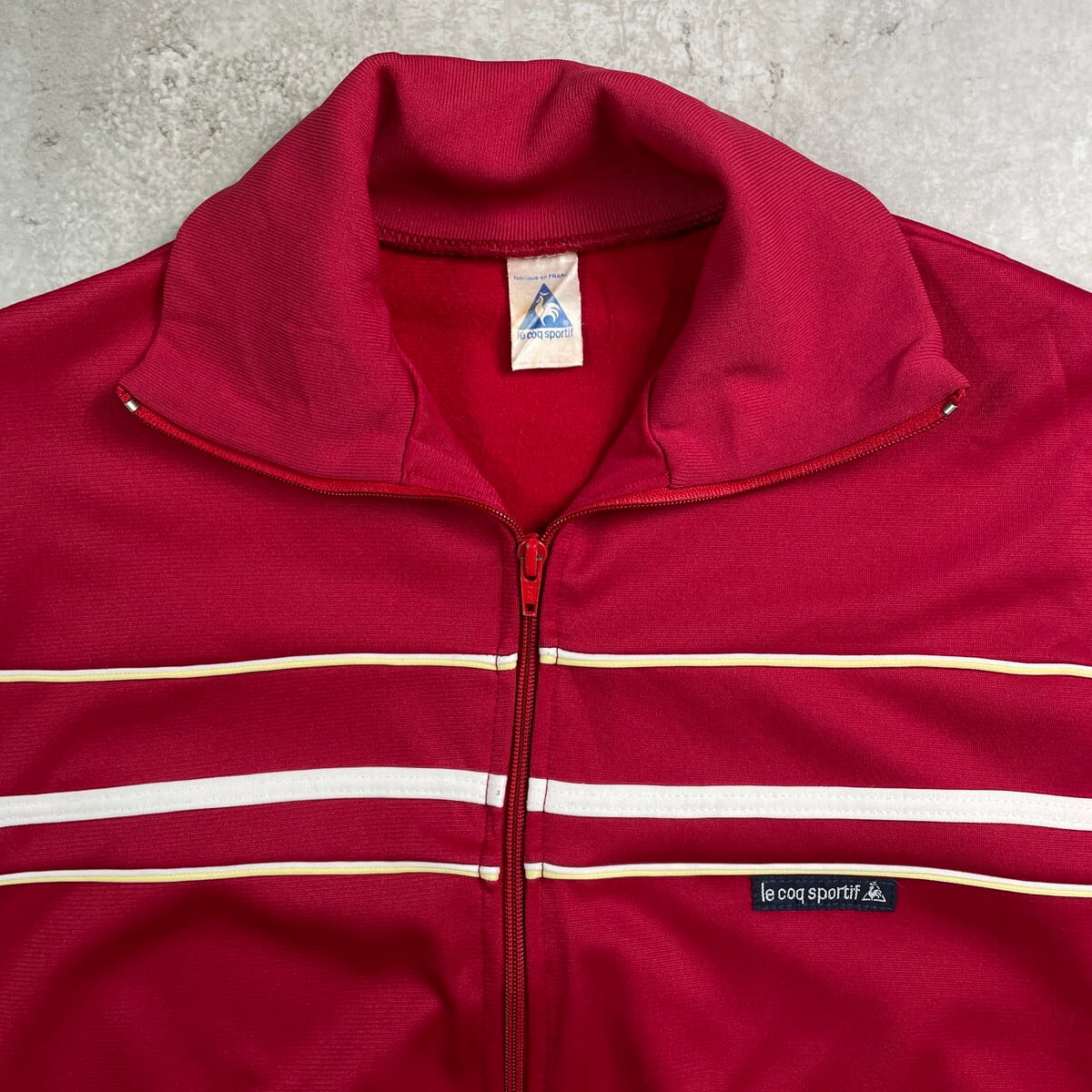 ■70~80年代 フランス製 Le coq sportif ルコック トラックジャケット ジャージ メンズL相当 レディースS相当 古着 70s 80s ヴィンテージ VINTAGE ハイネック 赤色 ホワイト イエロー【ジャージ・トラックジャケット】/レッド