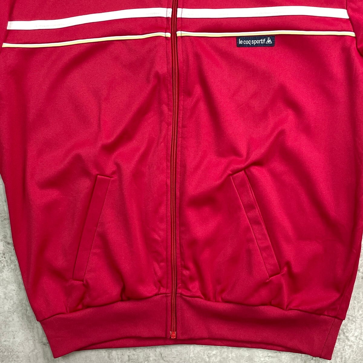70~80年代 フランス製 Le coq sportif ルコック トラックジャケット ジャージ メンズL相当 レディースS相当 古着 70s 80s ヴィンテージ VINTAGE ハイネック 赤色 ホワイト イエロー【ジャージ・トラックジャケット】/レッド