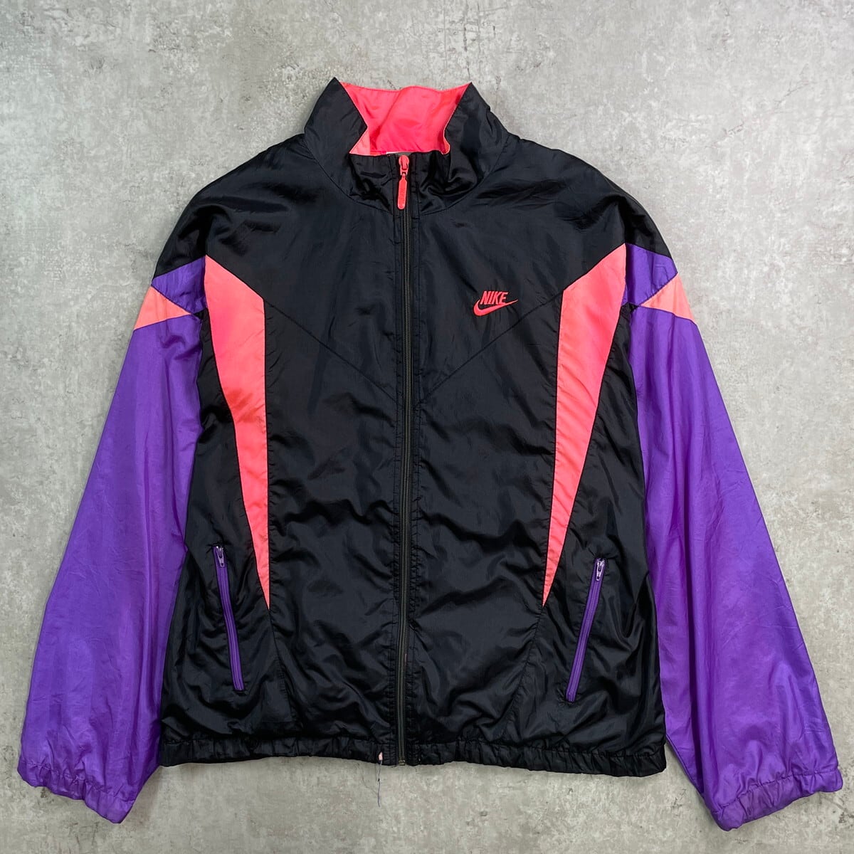 90年代 NIKE ナイキ 銀タグ 切替デザイン ナイロンジャケット メンズL相当 古着 90s VINTAGE ヴィンテージ ワンポイントロゴ刺繡 ブラック パープル サーモンピンク【ナイロンジャケット】/マルチカラー