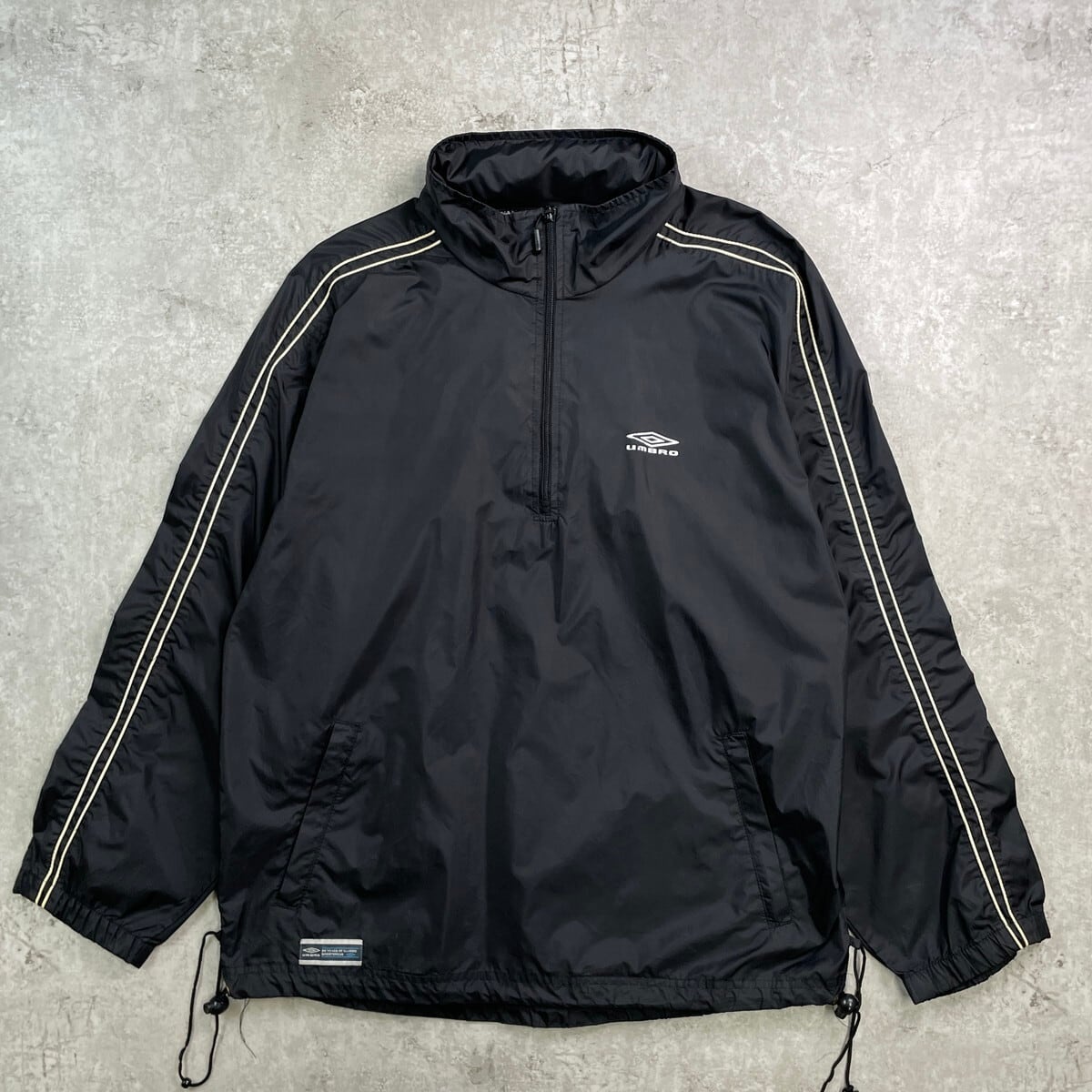00年代 UMBRO アンブロ アノラックパーカー ナイロンジャケット メンズL相当 古着 00s Y2K ヴィンテージ VINTAGE フード収納型 ドローコード付き ワンポイントロゴプリント 黒色【ナイロンジャケット】/ブラック