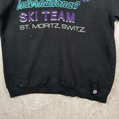 ■80~90年代 RUSSEL ATHLETIC ラッセルアスレチック EUROPE SKI TEAM アートプリント スウェットシャツ メンズM相当 古着 80s 90s ヴィンテージ VINTAGE 前Vガゼット スキー 黒色【スウェット】/ブラック