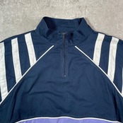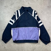 ■ユーロ ハーフジップ コットンプルオーバー メンズXL相当 古着 切り替えデザイン ハンドポケット付き 紺色 ホワイト ライトパープル 【コットンジャケット】/ネイビー