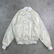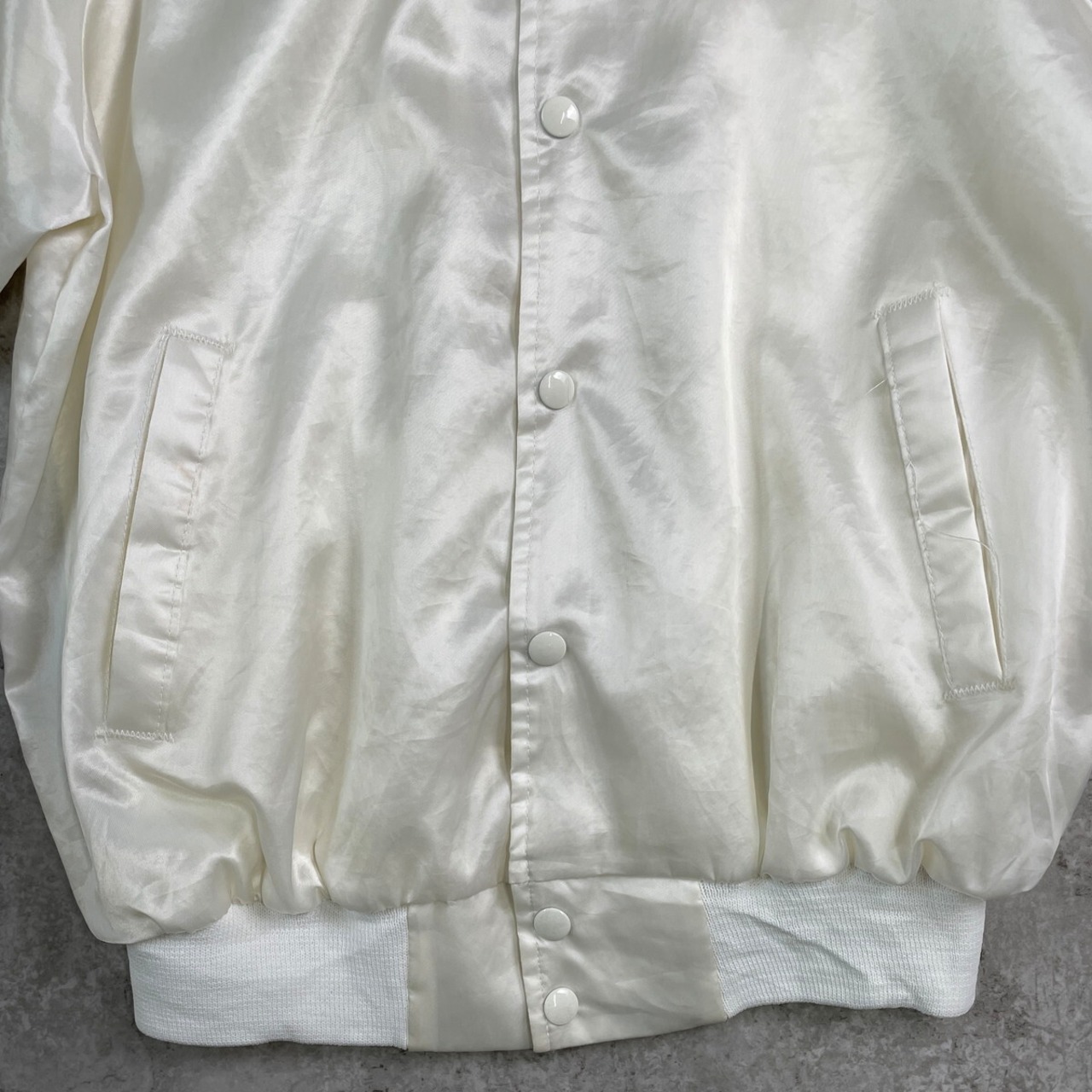 ■80年代 USA製 USMC U.S. MARINE CORPS ナイロン サテンスタジャン 企業ロゴプリント メンズL 古着 80s アメカジ ヴィンテージ VINTAGE アメリカ海兵隊 ブルドッグ バックプリント 生成り色 オフホワイト【ナイロンジャケット】/ホワイト