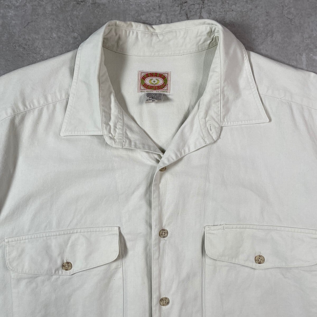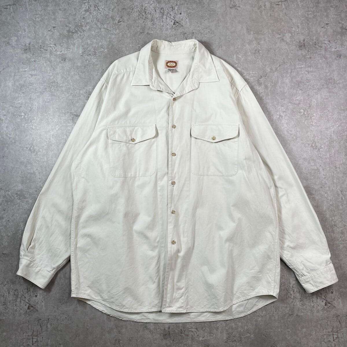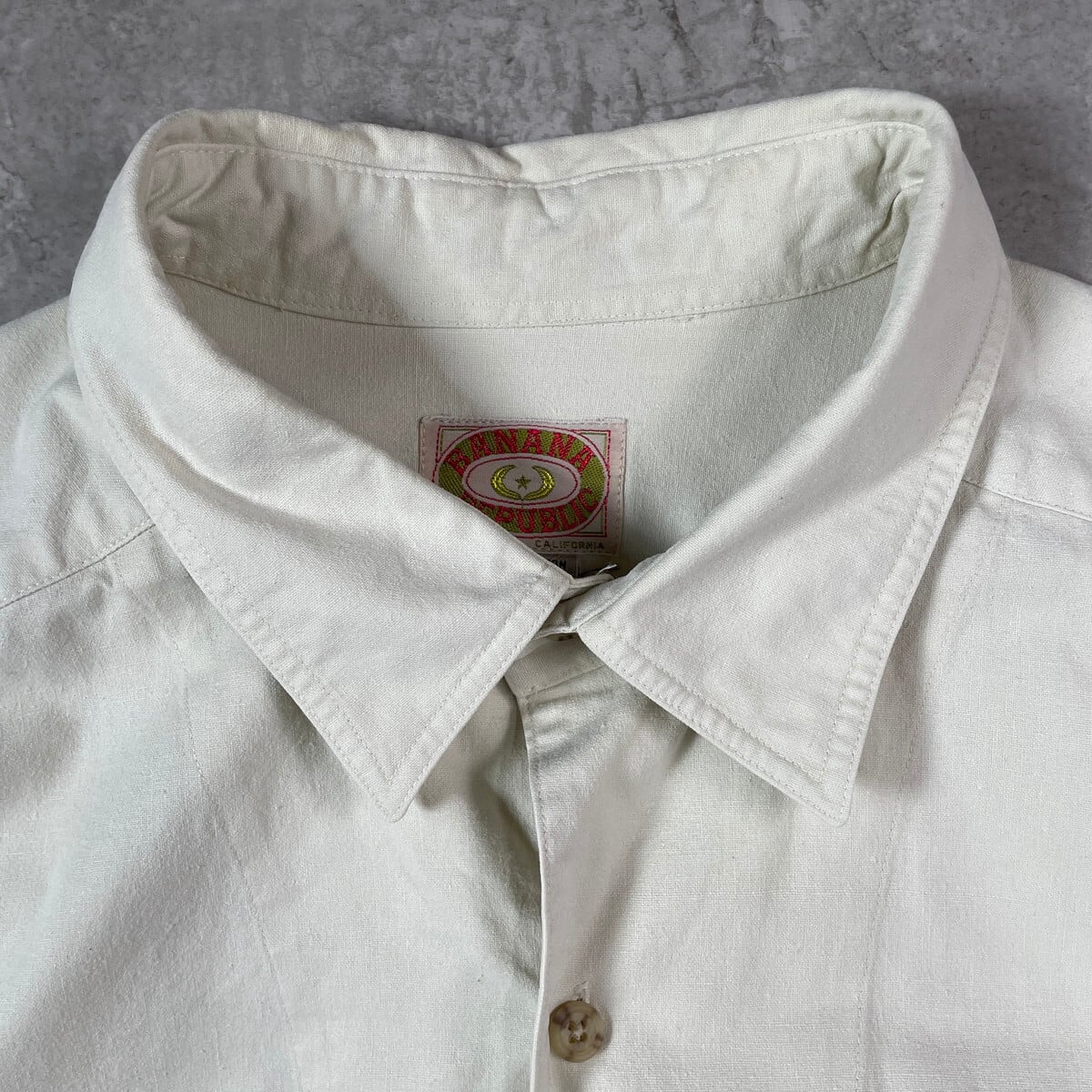 80年代 BANANA REPUBLIC バナナリパブリック 初期タグ コットンシャツ メンズ2XL相当 古着 80s ヴィンテージ VINTAGE ダブルポケット ビッグサイズ 大きいサイズ ホワイトベージュ【長袖シャツ】/ベージュ