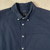 GAP ギャップ ボタンダウンシャツ 無地 メンズL 古着 B.D.シャツ アメカジ 胸ポケ付き 紺色【長袖シャツ】/ネイビー