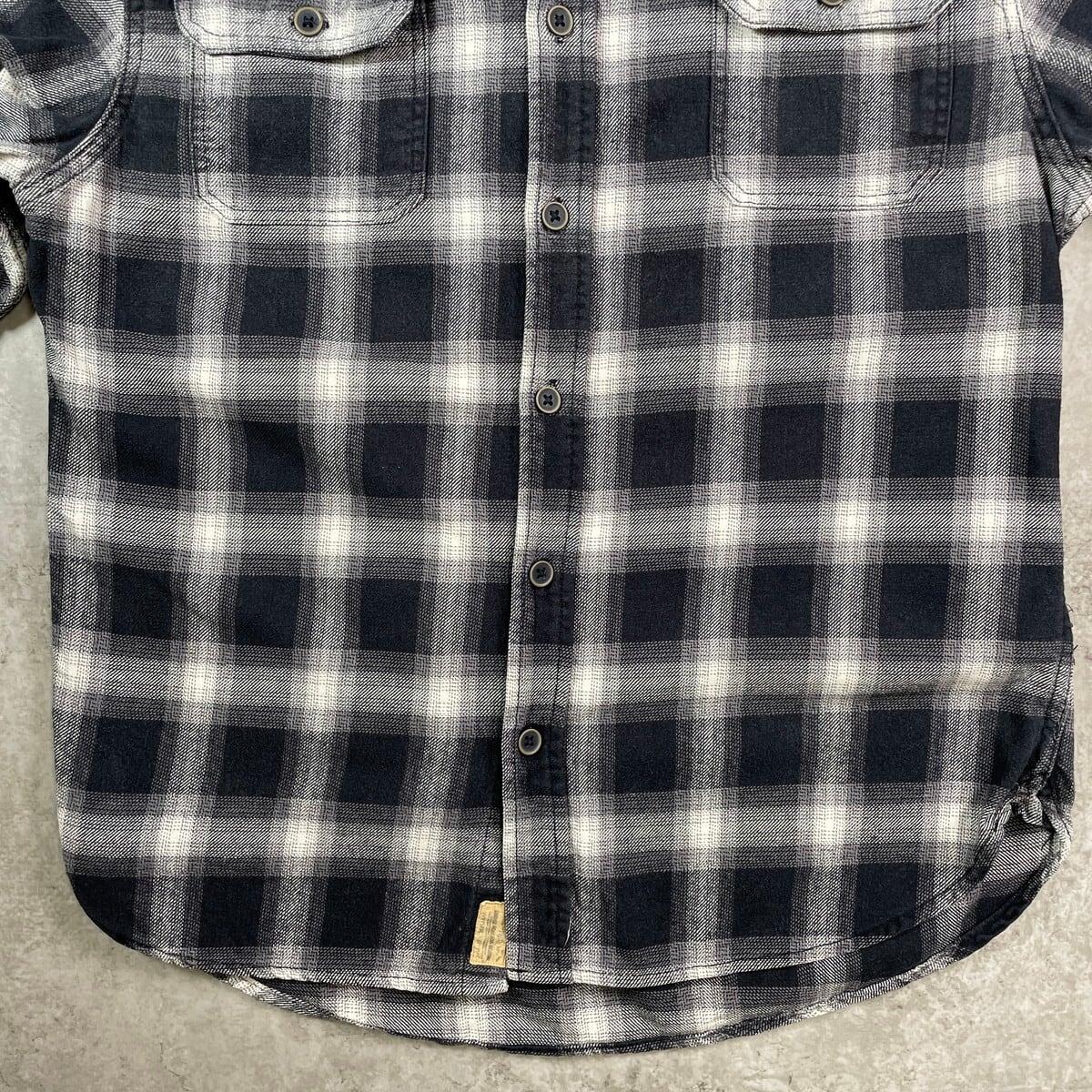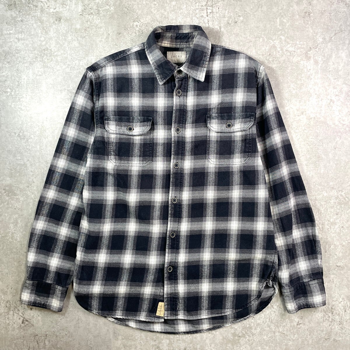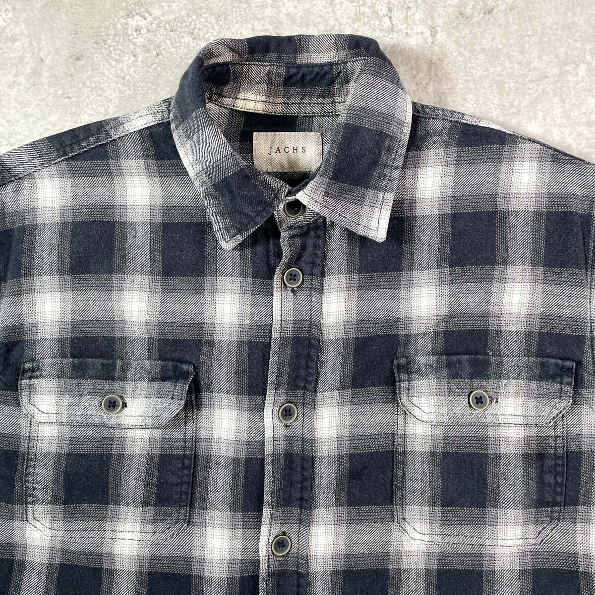 ■JACHS オンブレ チェックシャツ ヘビーネルシャツ メンズL相当 古着 マチ付き ダブルポケット ブラック 黒 グレー ホワイト 白【長袖シャツ】/マルチカラー