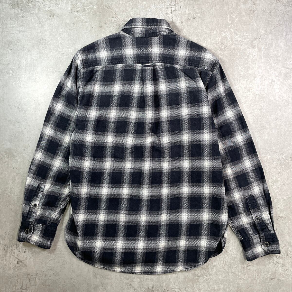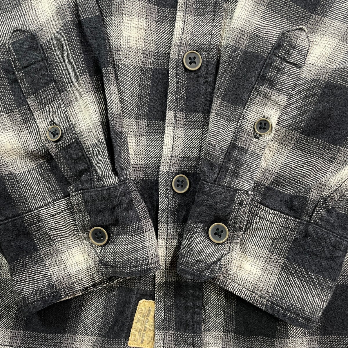 JACHS オンブレ チェックシャツ ヘビーネルシャツ メンズL相当 古着 マチ付き ダブルポケット ブラック 黒 グレー ホワイト 白【長袖シャツ】/マルチカラー