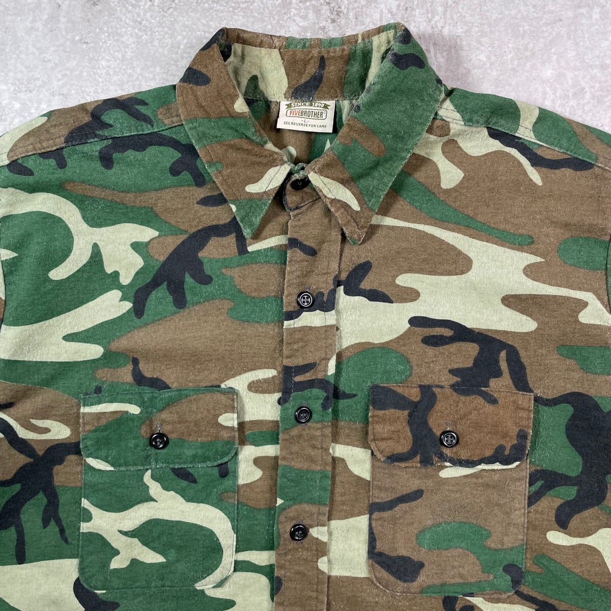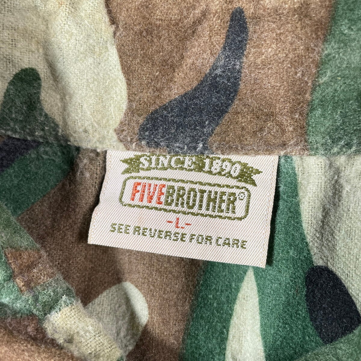 90年代 USA製 FIVE BROTHER ファイブブラザー 迷彩 カモフラ ライトネルシャツ メンズL 古着 90s ヴィンテージ VINTAGE ダブルポケット グリーン ブラック ベージュ【長袖シャツ】/マルチカラー