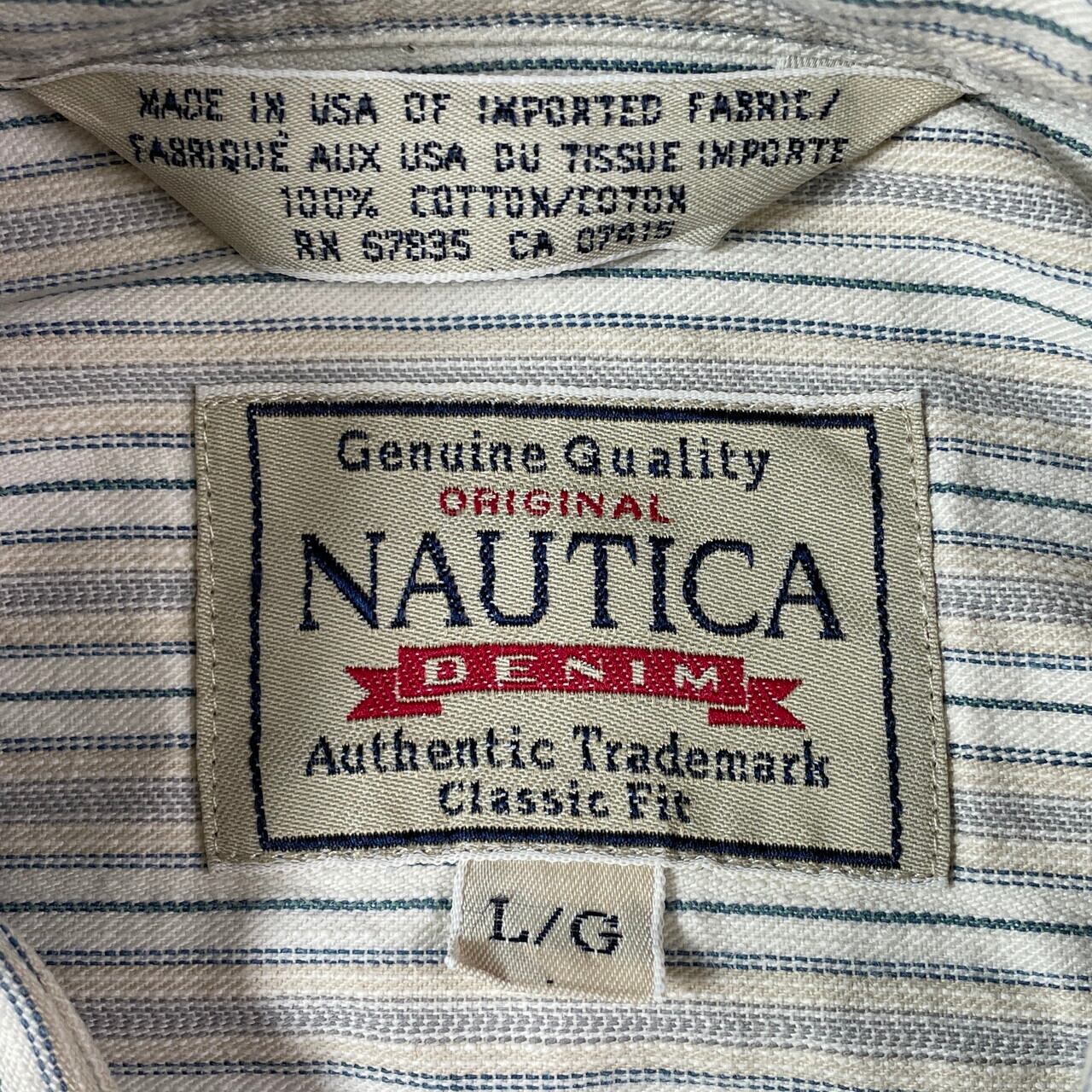 90年代 USA製 NAUTICA ノーティカ ストライプシャツ メンズXL相当 古着 90s ヴィンテージ VINTAGE アメカジ ネコ目ボタン【長袖シャツ】/マルチカラー