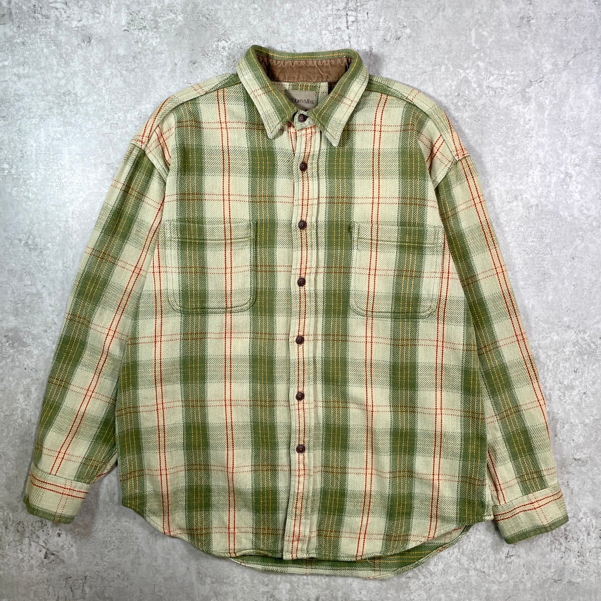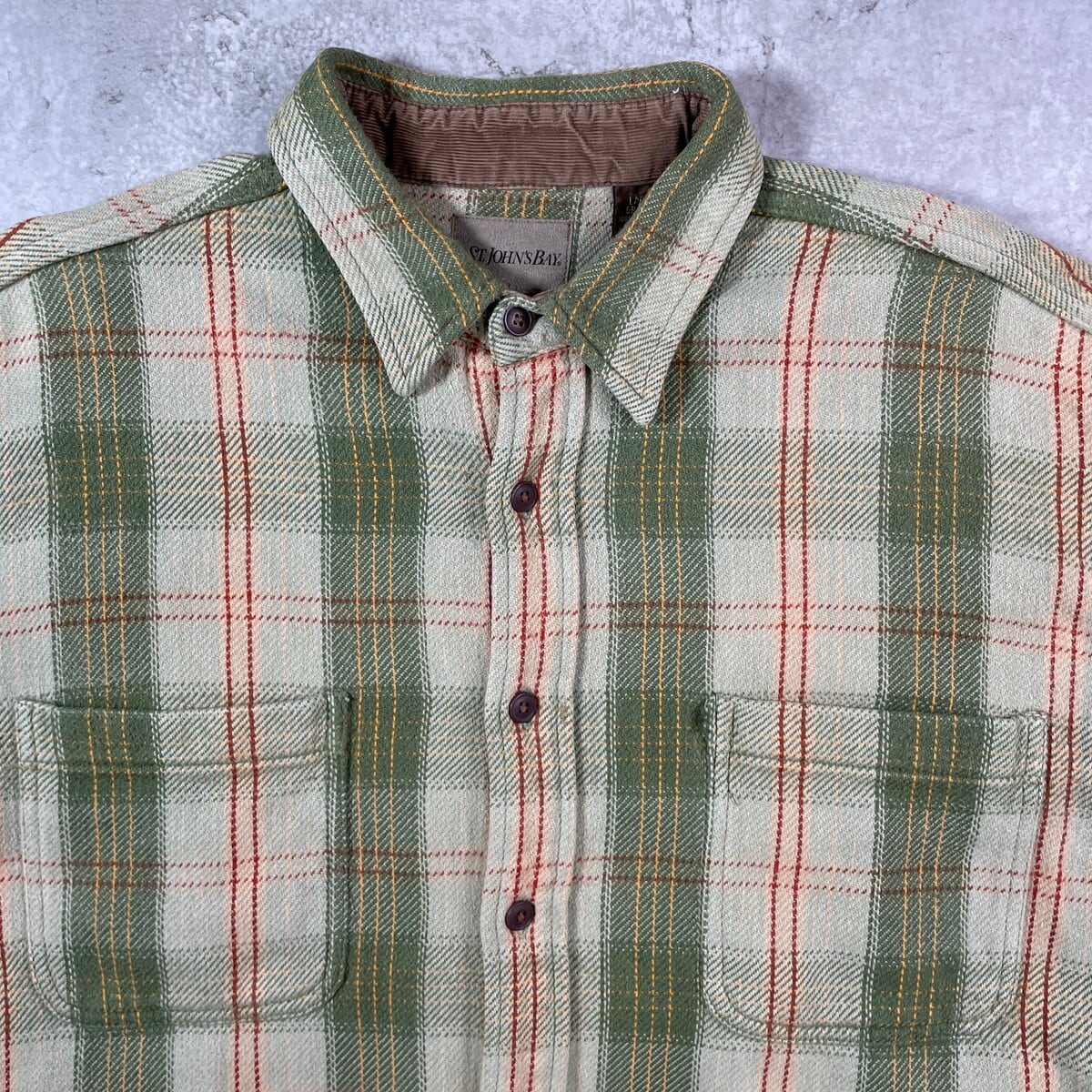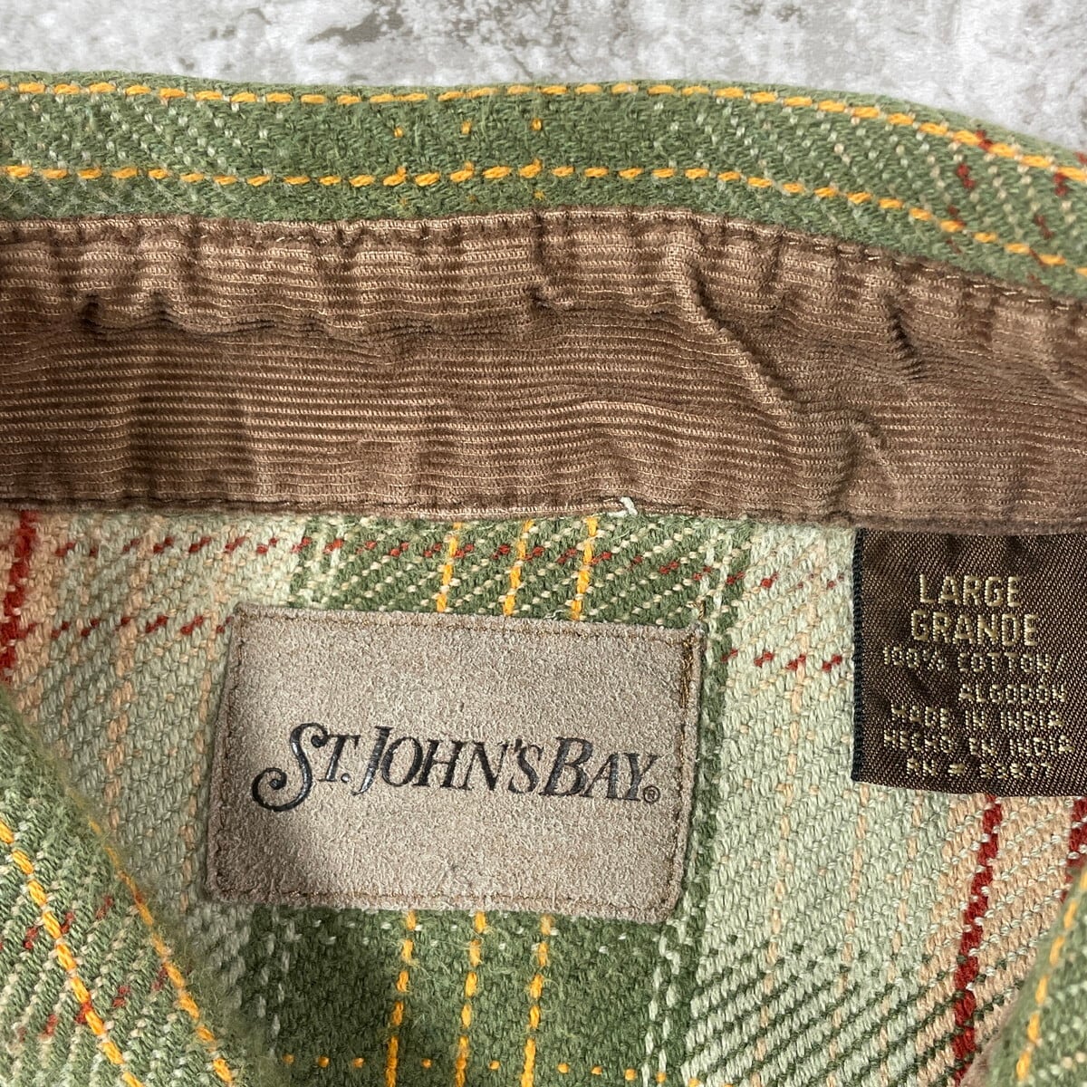 ■90~00年代 ST. JOHN'S BAY セントジョンズベイ タータンチェック ヘビーネルシャツ メンズL 古着 90s 00s Y2K VINTAGE ヴィンテージ ダブルポケット グリーン レッド オレンジ【長袖シャツ】/マルチカラー
