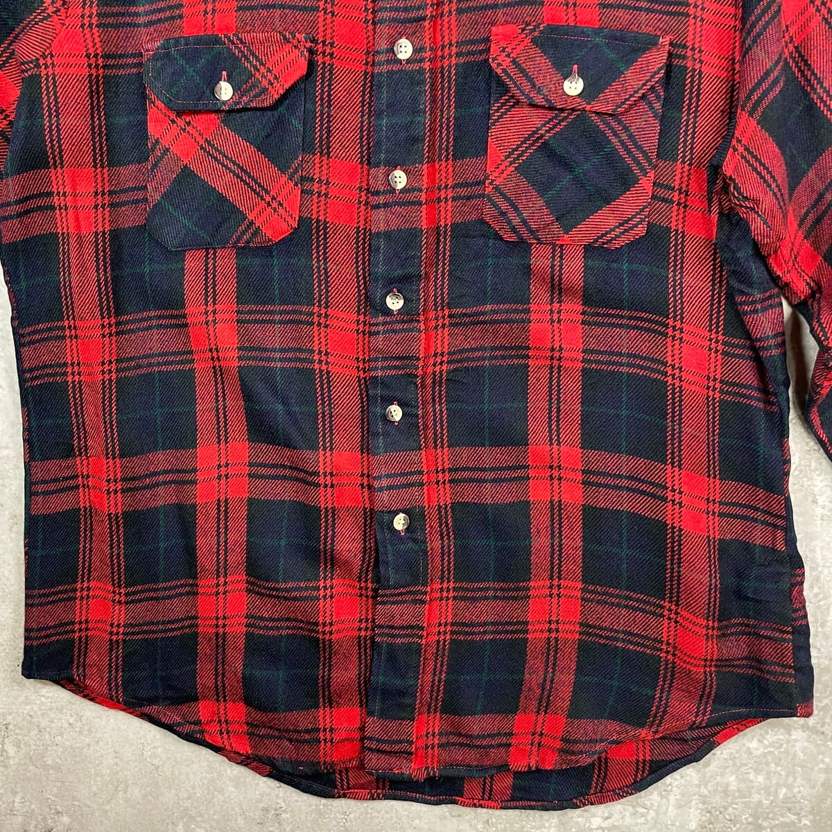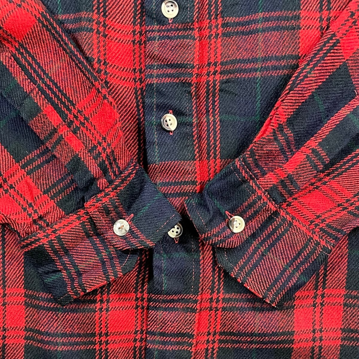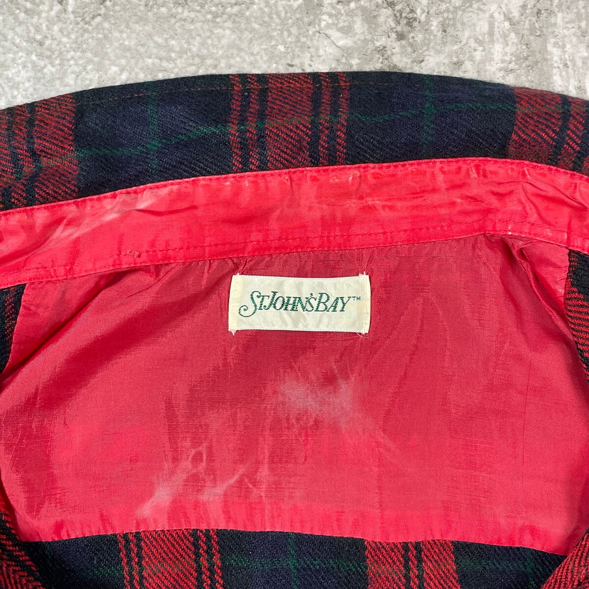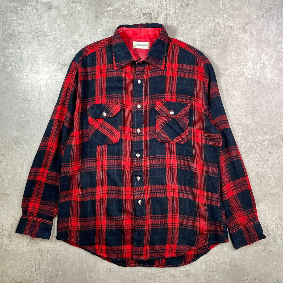 ■80年代 ST. JOHN'S BAY セントジョンズベイ タータンチェック ウールシャツ メンズL相当 古着 80s VINTAGE ヴィンテージ ダブルポケット グリーン レッド ネイビー【長袖シャツ】/マルチカラー