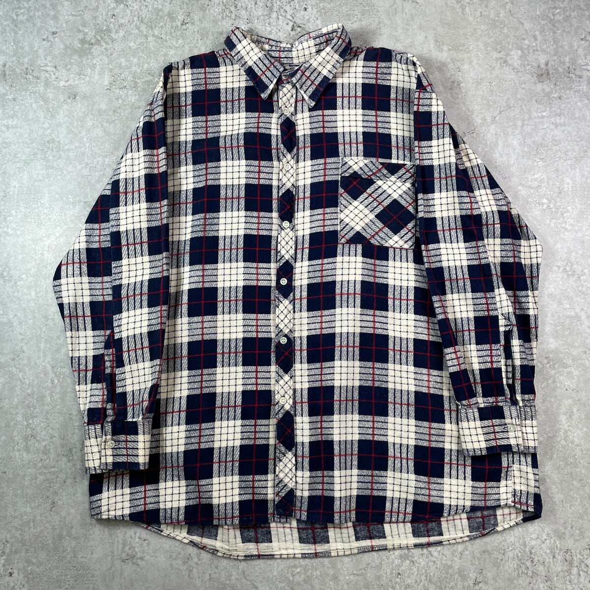 90年代 Palermo チェック ネルシャツ メンズ2XL 古着 90s VINTAGE ヴィンテージ アメカジ 胸ポケ付き ビッグサイズ 大きいサイズ ネイビー レッド ホワイト【長袖シャツ】/マルチカラー