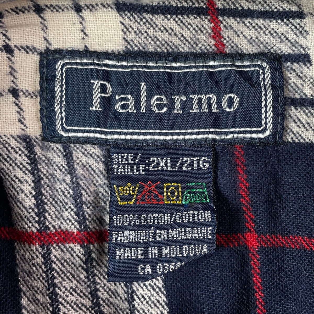 ■90年代 Palermo チェック ネルシャツ メンズ2XL 古着 90s VINTAGE ヴィンテージ アメカジ 胸ポケ付き ビッグサイズ 大きいサイズ ネイビー レッド ホワイト【長袖シャツ】/マルチカラー