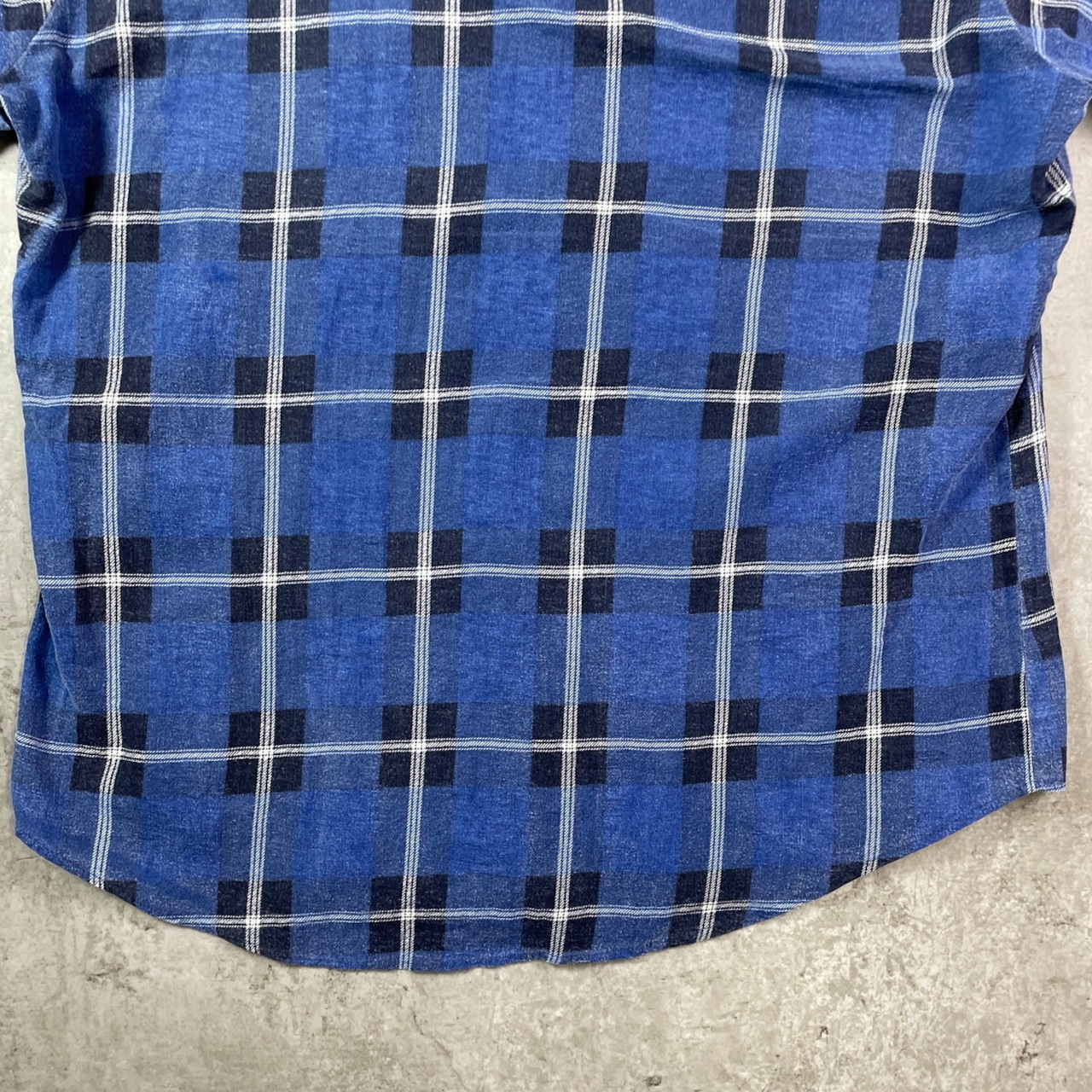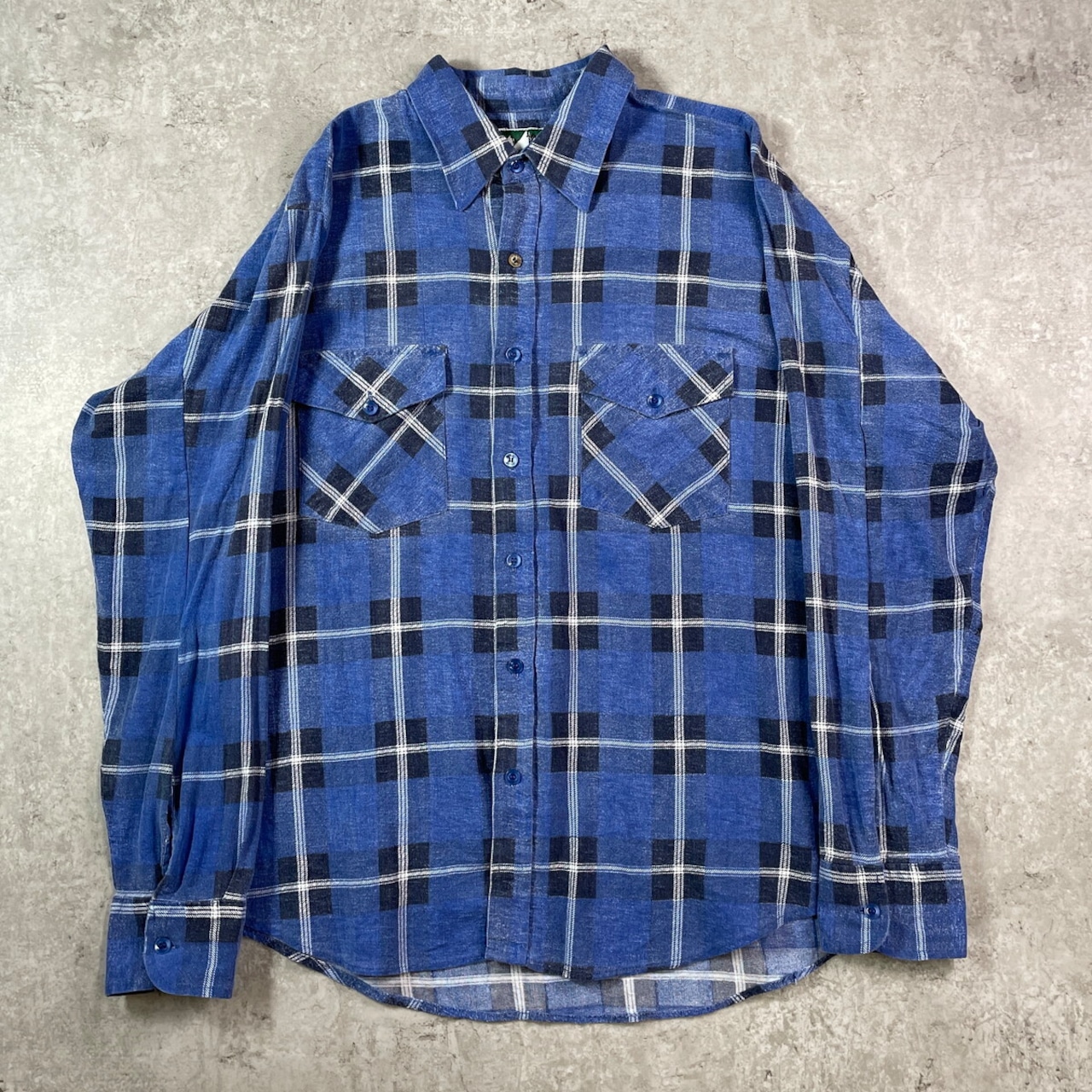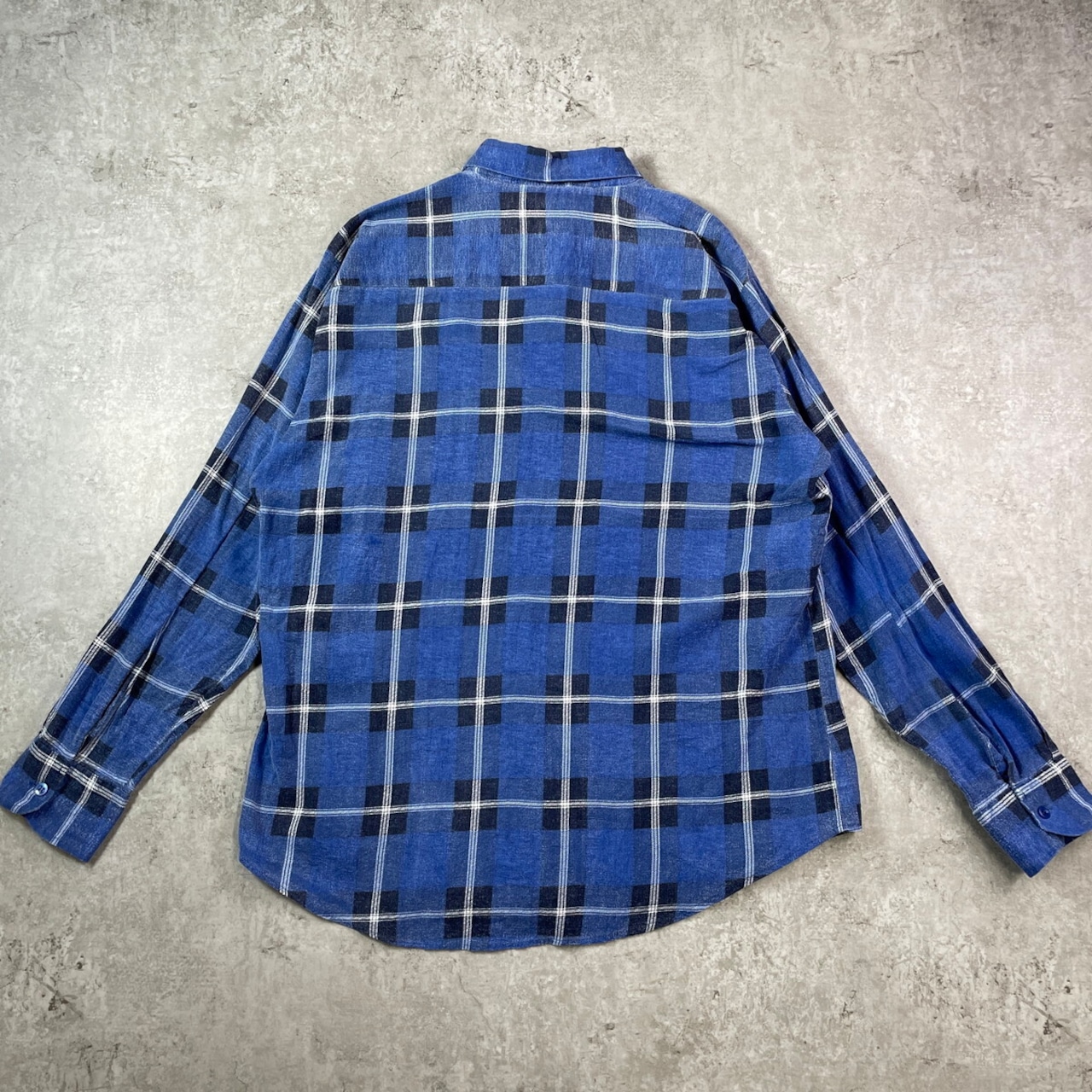90年代 HABAND チェック ライトネルシャツ メンズL 古着 90s VINTAGE ヴィンテージ アメカジ ダブルポケット 青色 ネイビー ホワイト【長袖シャツ】/ブルー