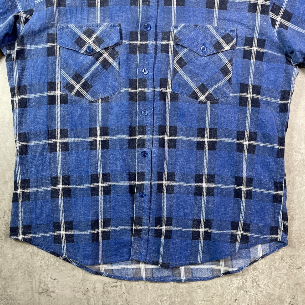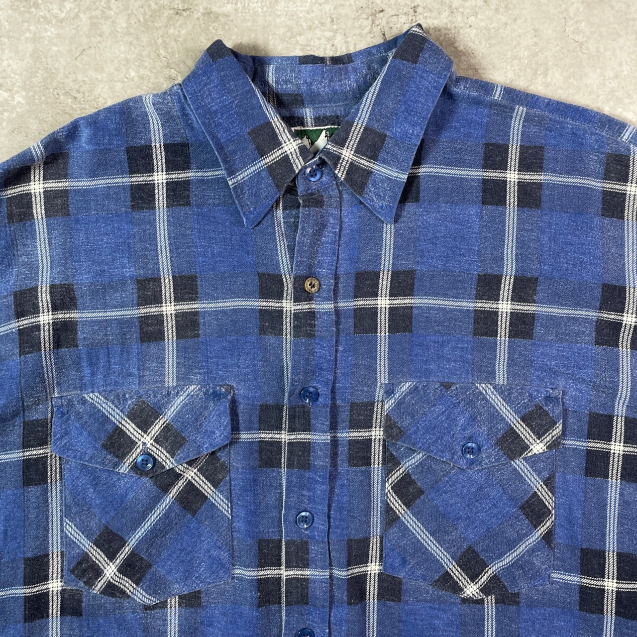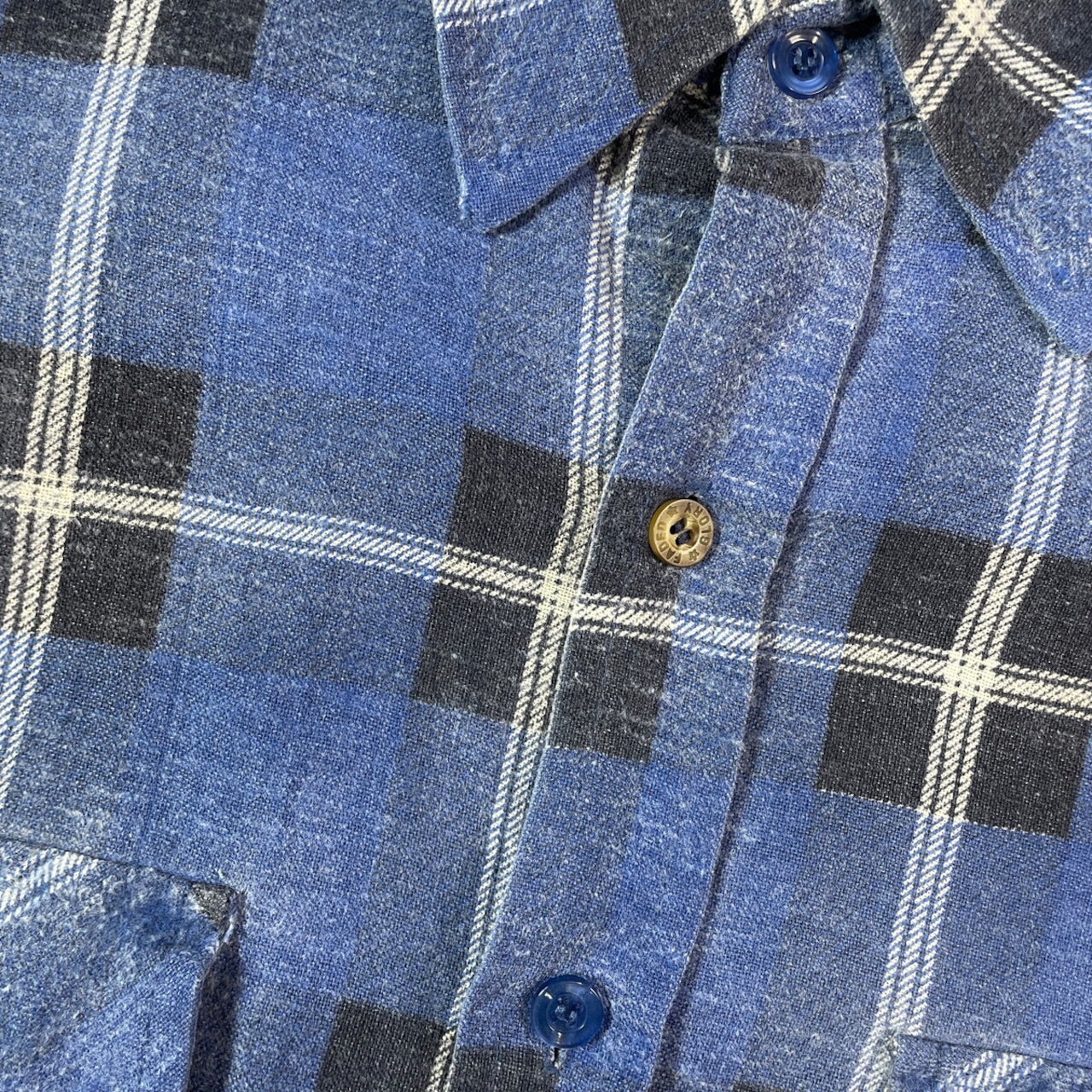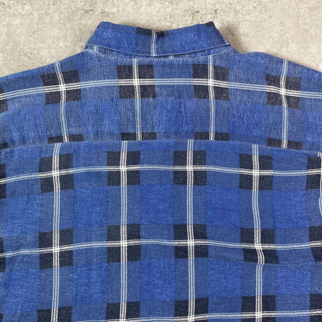 90年代 HABAND チェック ライトネルシャツ メンズL 古着 90s VINTAGE ヴィンテージ アメカジ ダブルポケット 青色 ネイビー ホワイト【長袖シャツ】/ブルー