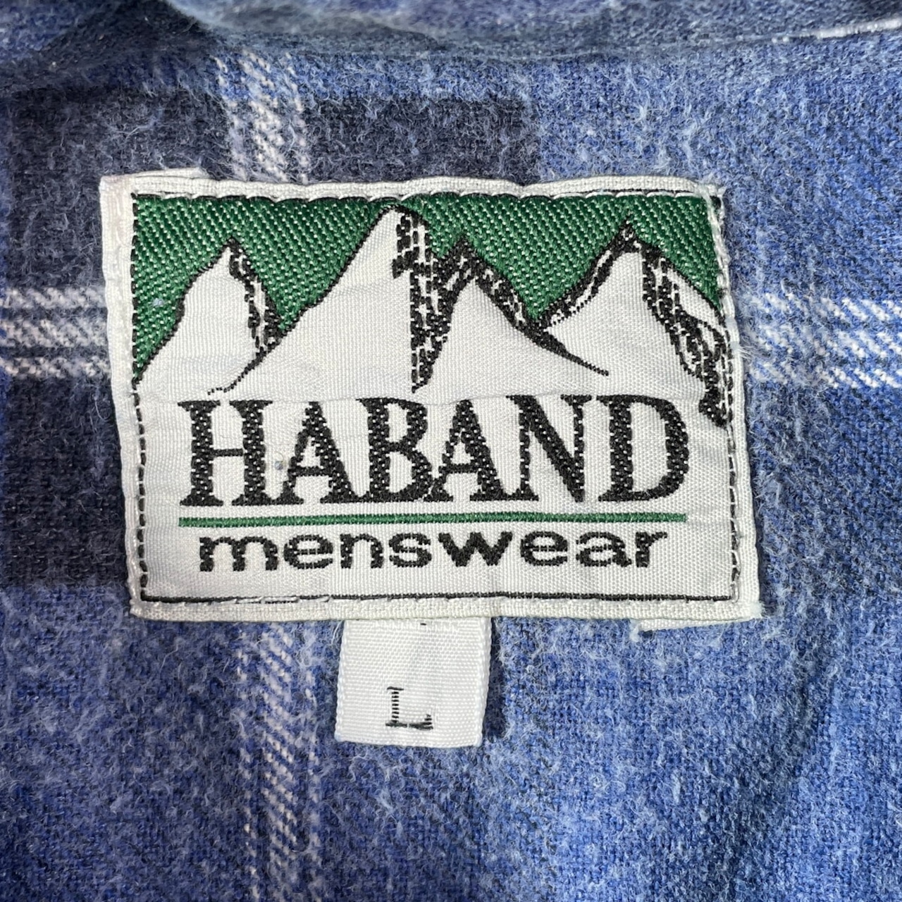 ■90年代 HABAND チェック ライトネルシャツ メンズL 古着 90s VINTAGE ヴィンテージ アメカジ ダブルポケット 青色 ネイビー ホワイト【長袖シャツ】/ブルー