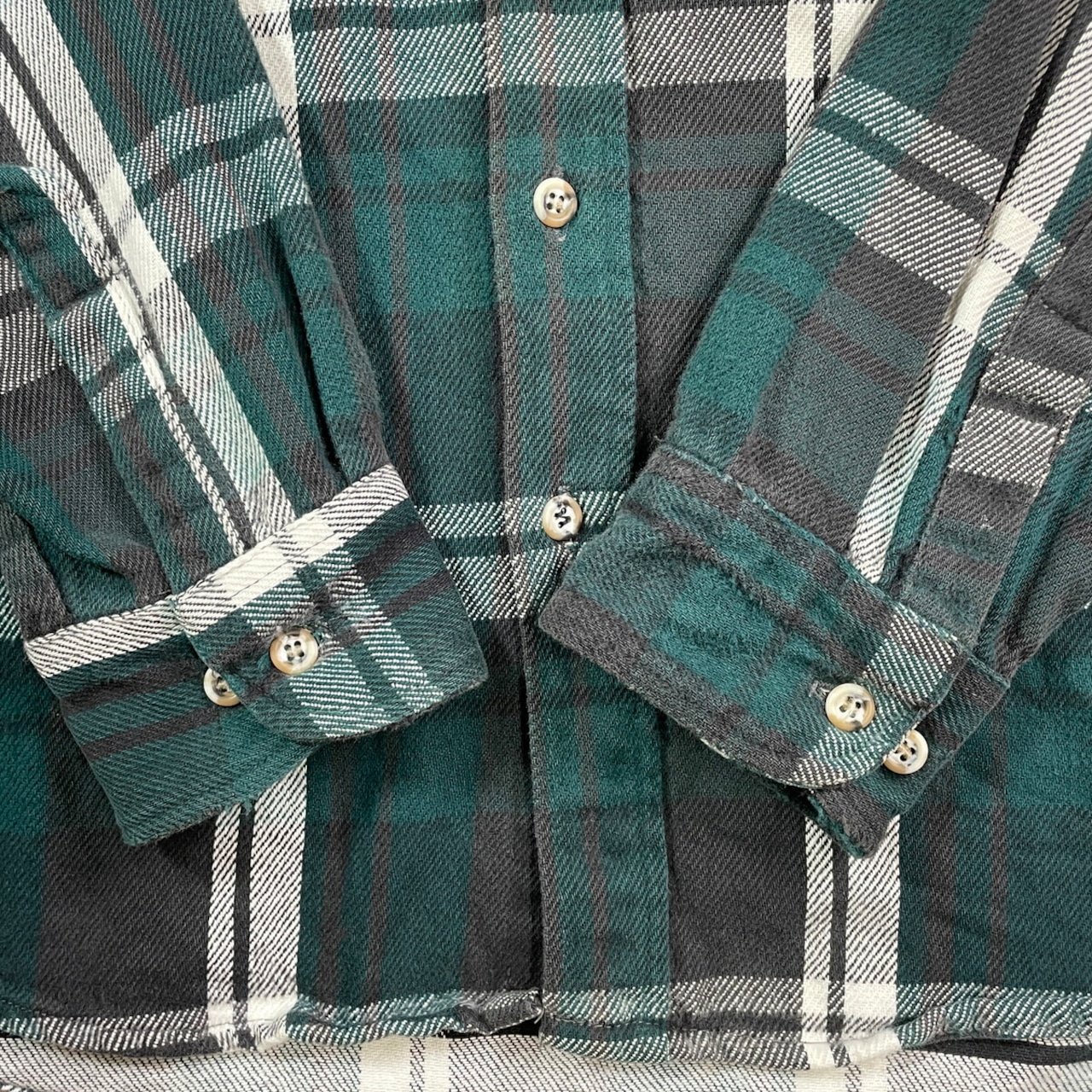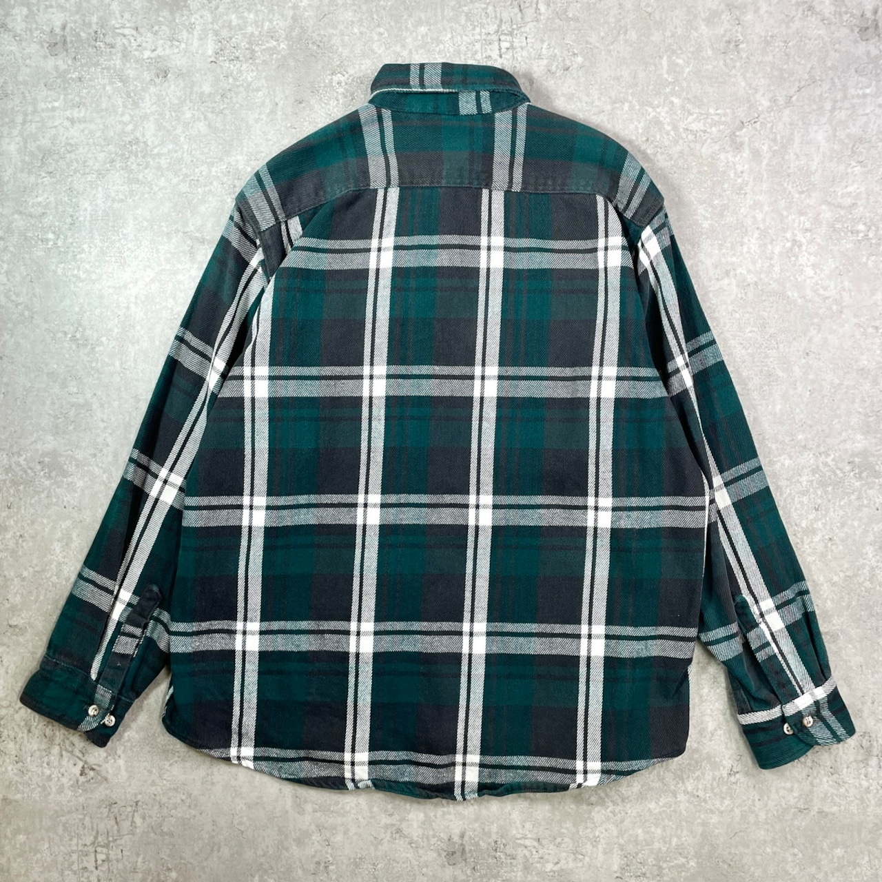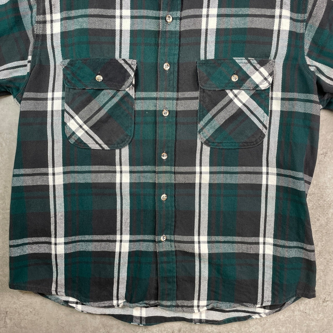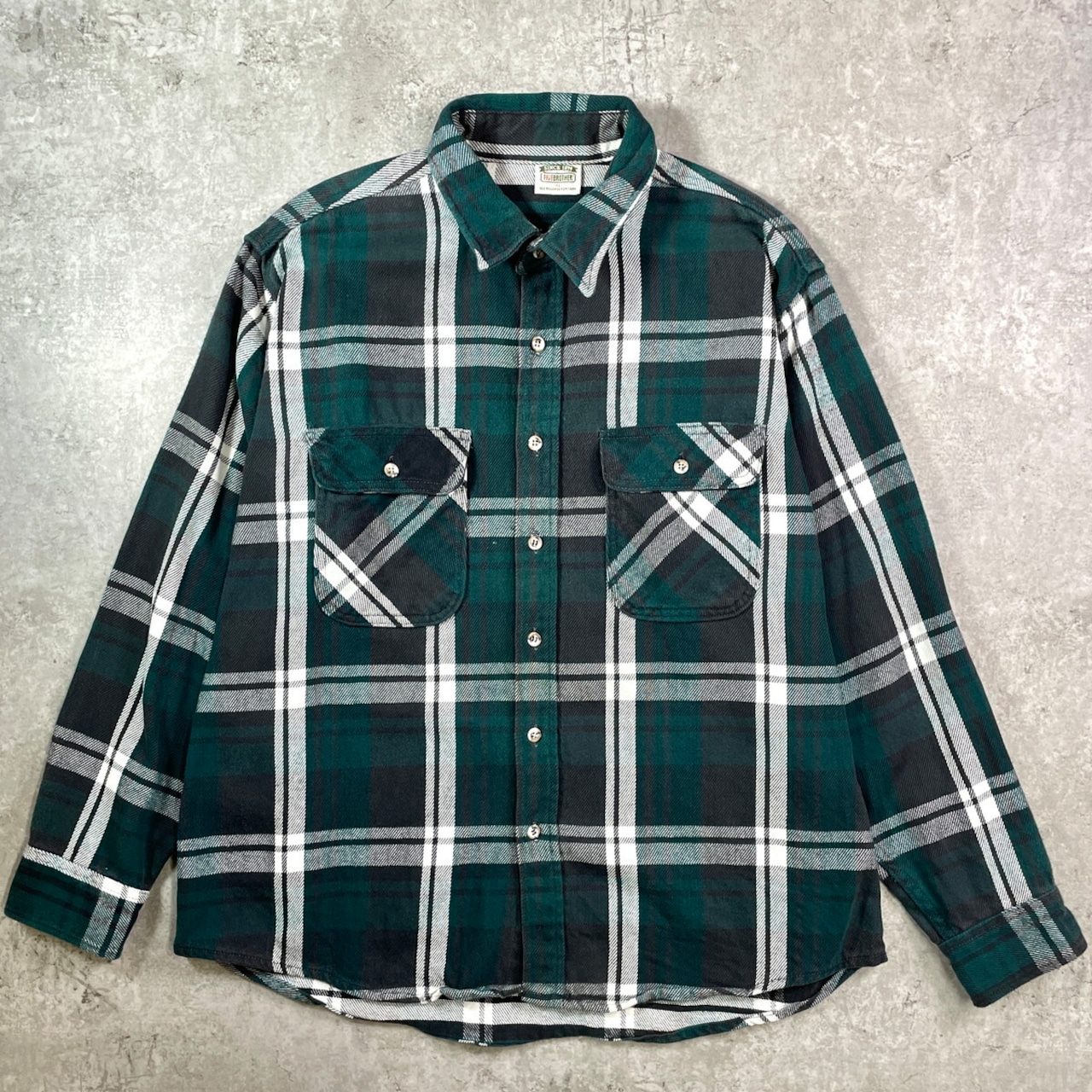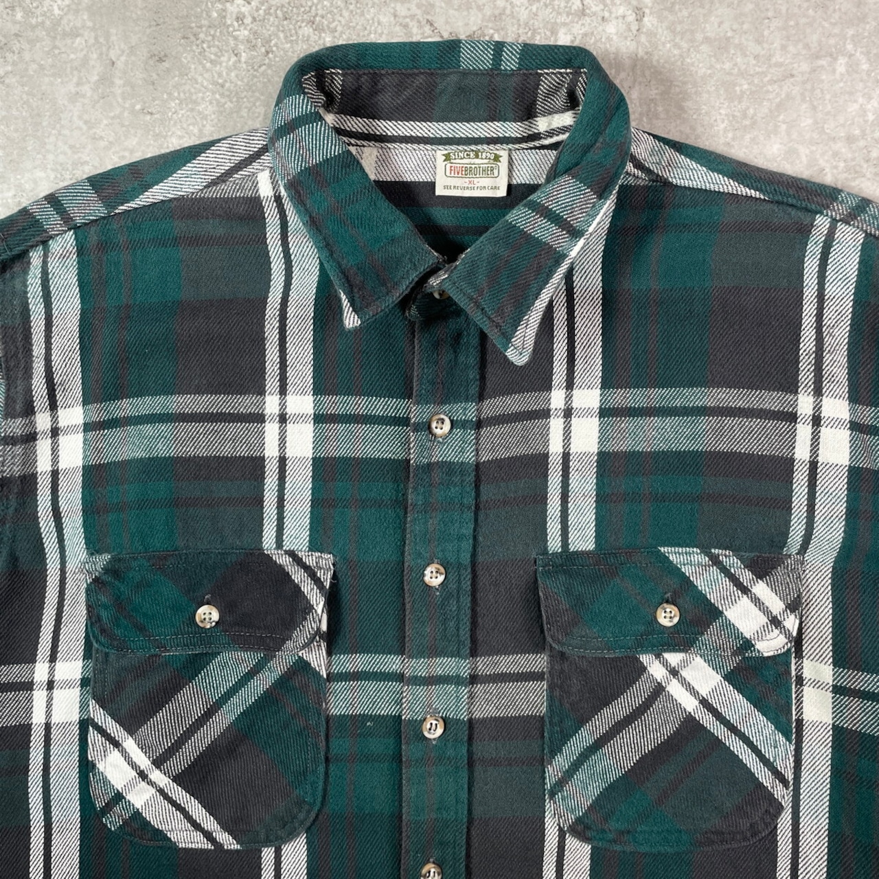 ■90年代 FIVE BROTHER ファイブブラザー ヘビーネルシャツ チェックシャツ メンズXL 古着 90s ヴィンテージ VINTAGE ダブルポケット グリーン ホワイト ブラック【長袖シャツ】/マルチカラー