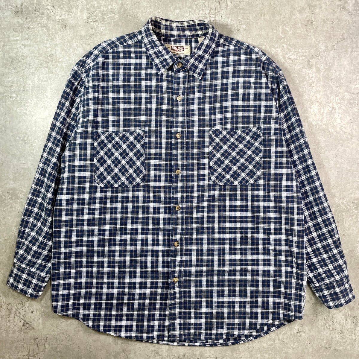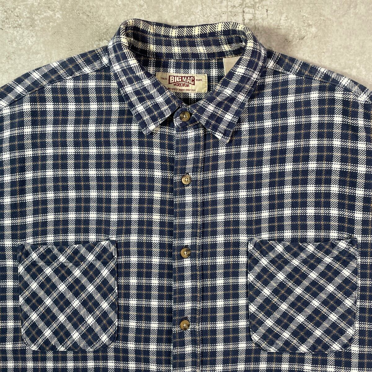 90年代 BIG MAC ビッグマック チェック ヘビーネルシャツ メンズXL 古着 90s VINTAGE ヴィンテージ アメカジ ダブルポケット ブルー ホワイト 【長袖シャツ】/マルチカラー