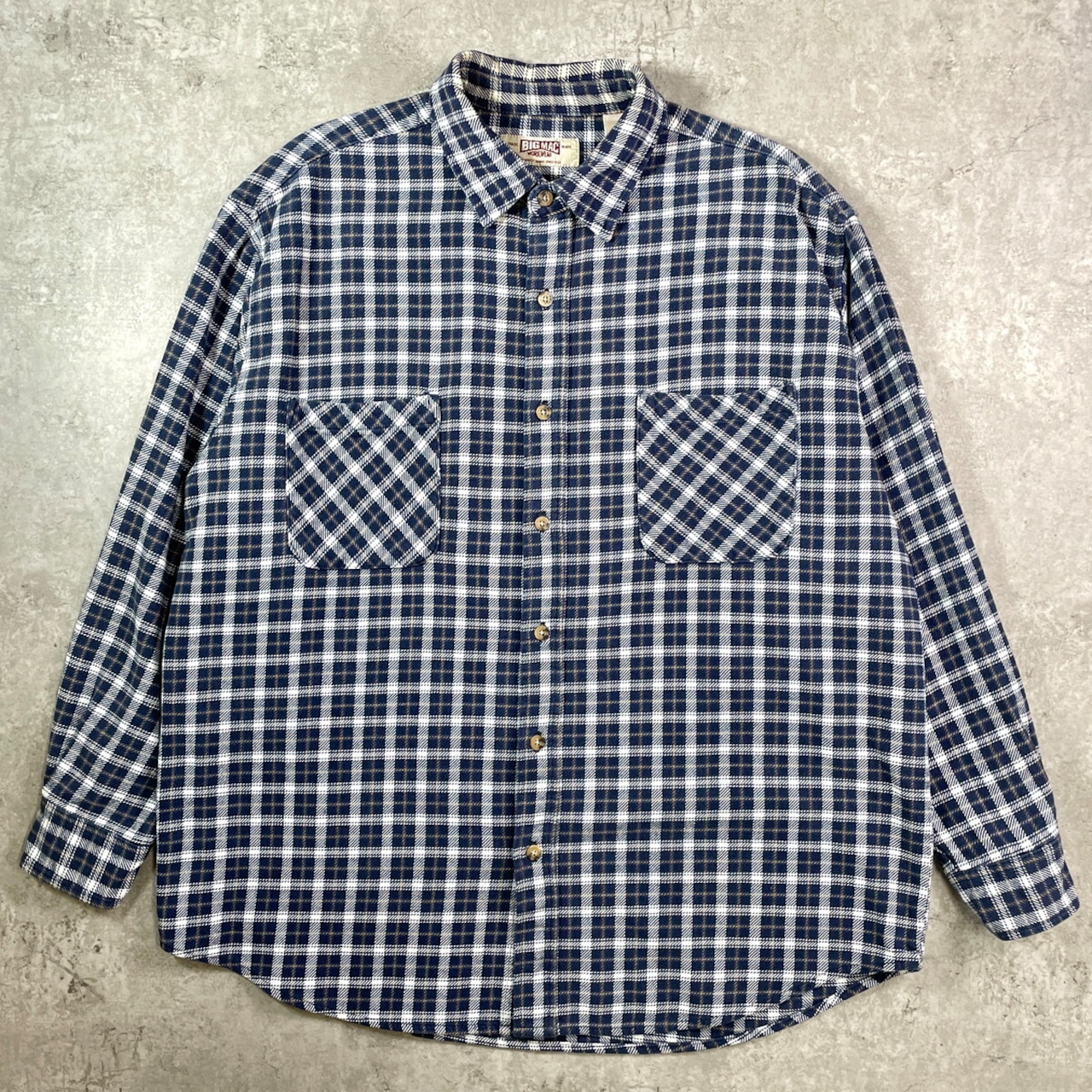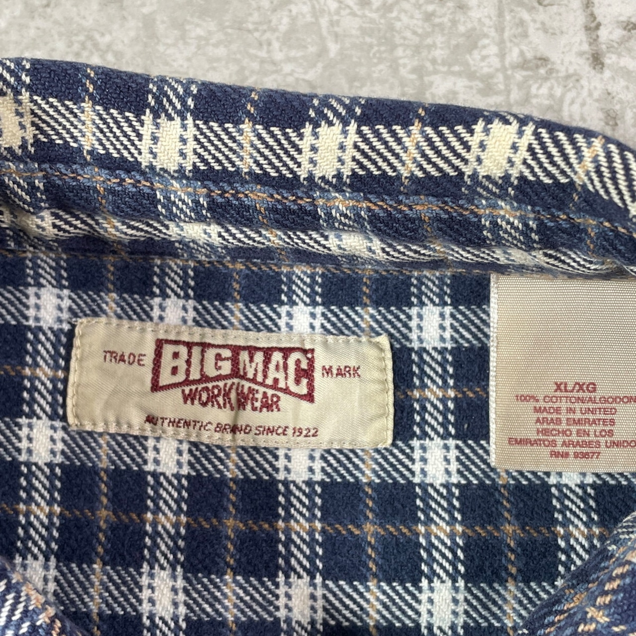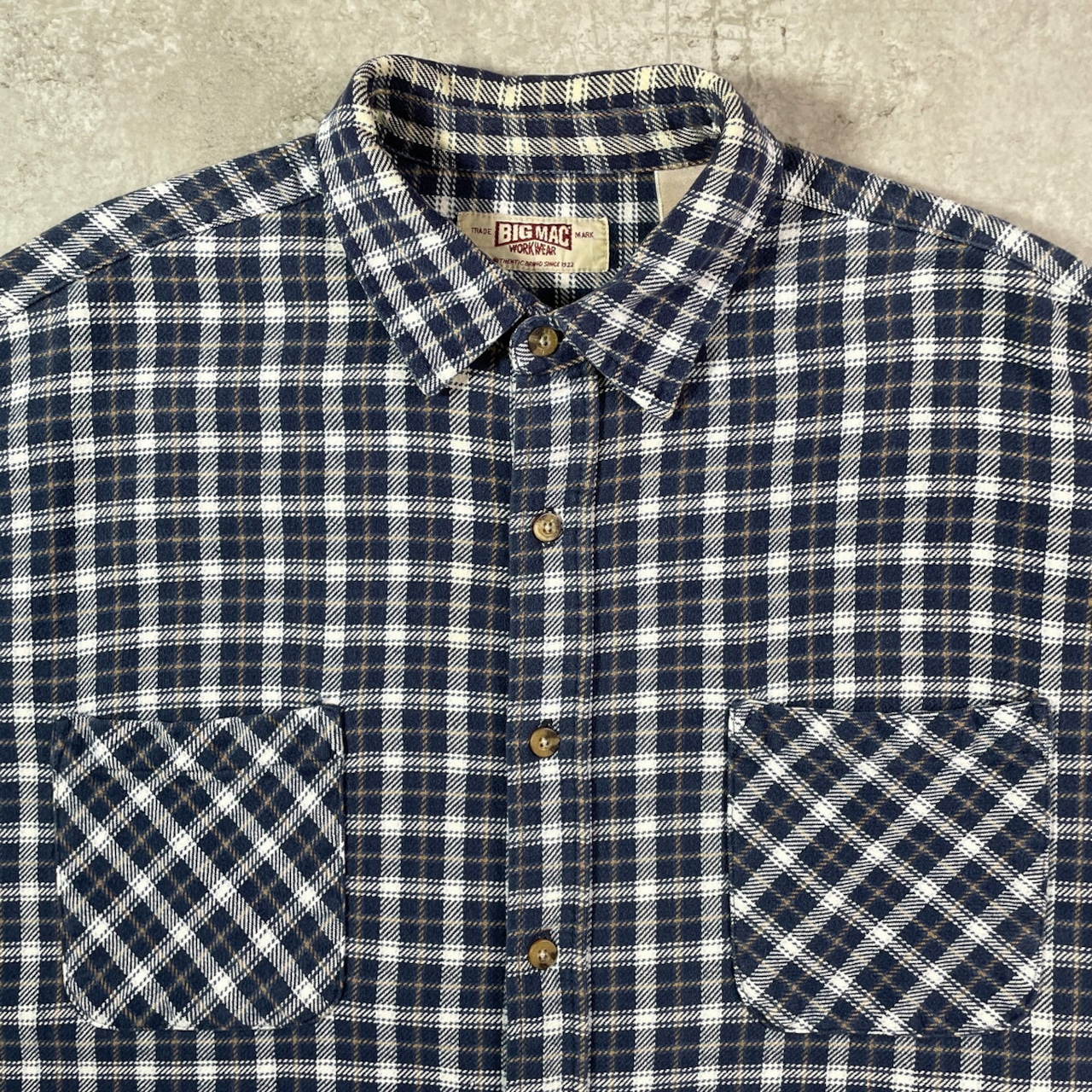 ■90年代 BIG MAC ビッグマック チェック ヘビーネルシャツ メンズXL 古着 90s VINTAGE ヴィンテージ アメカジ ダブルポケット ブルー ホワイト 【長袖シャツ】/マルチカラー