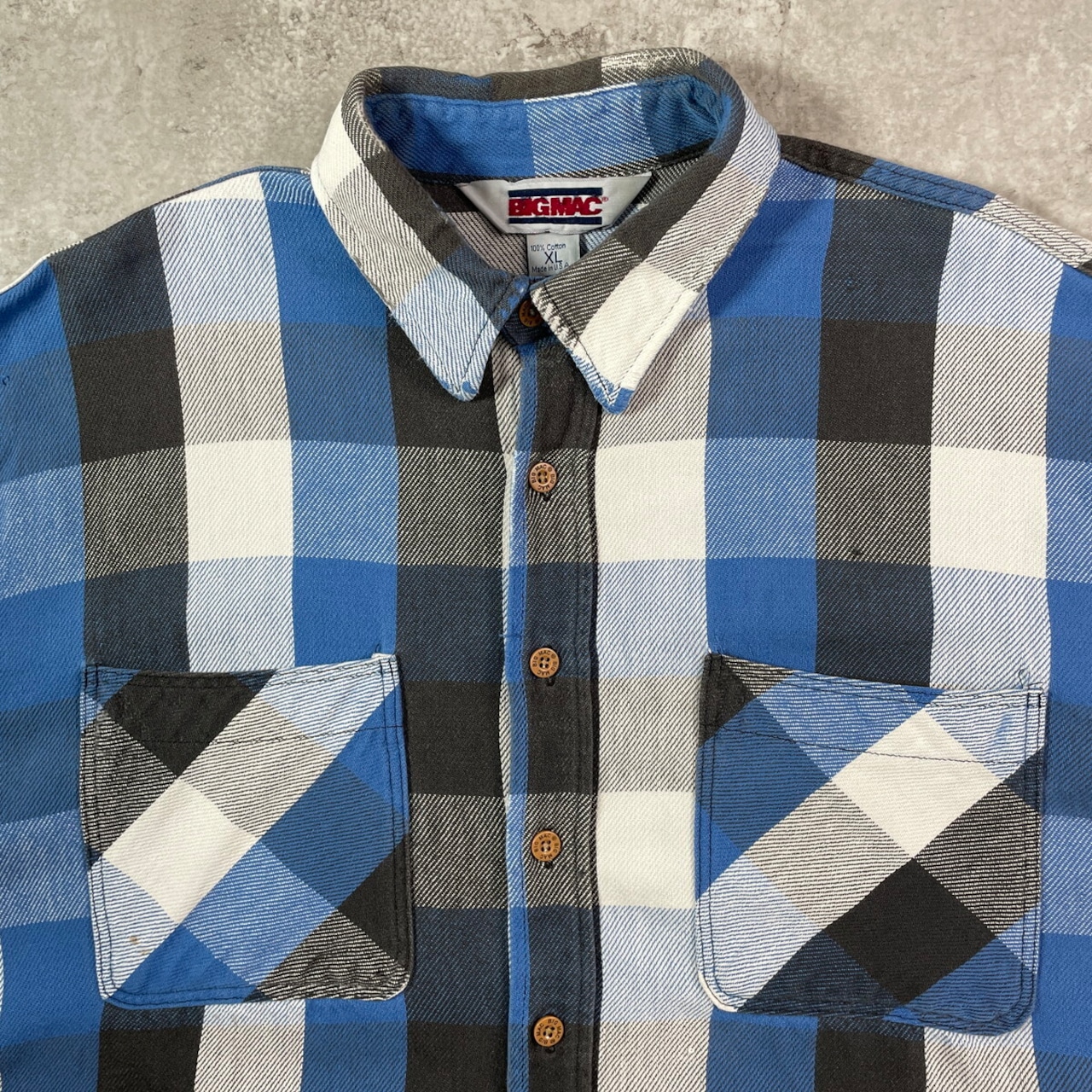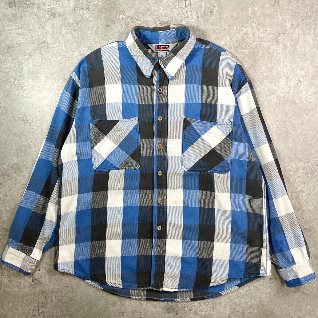 80年代 USA製 BIG MAC ビッグマック ブロックチェック ヘビーネルシャツ メンズXL 古着 80s VINTAGE ヴィンテージ アメカジ ダブルポケット ブルー ホワイト ダークグレー 【長袖シャツ】/マルチカラー