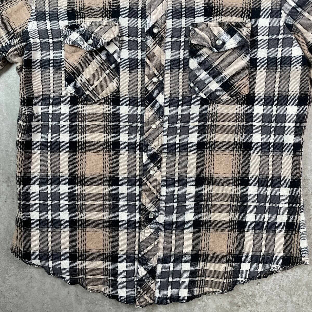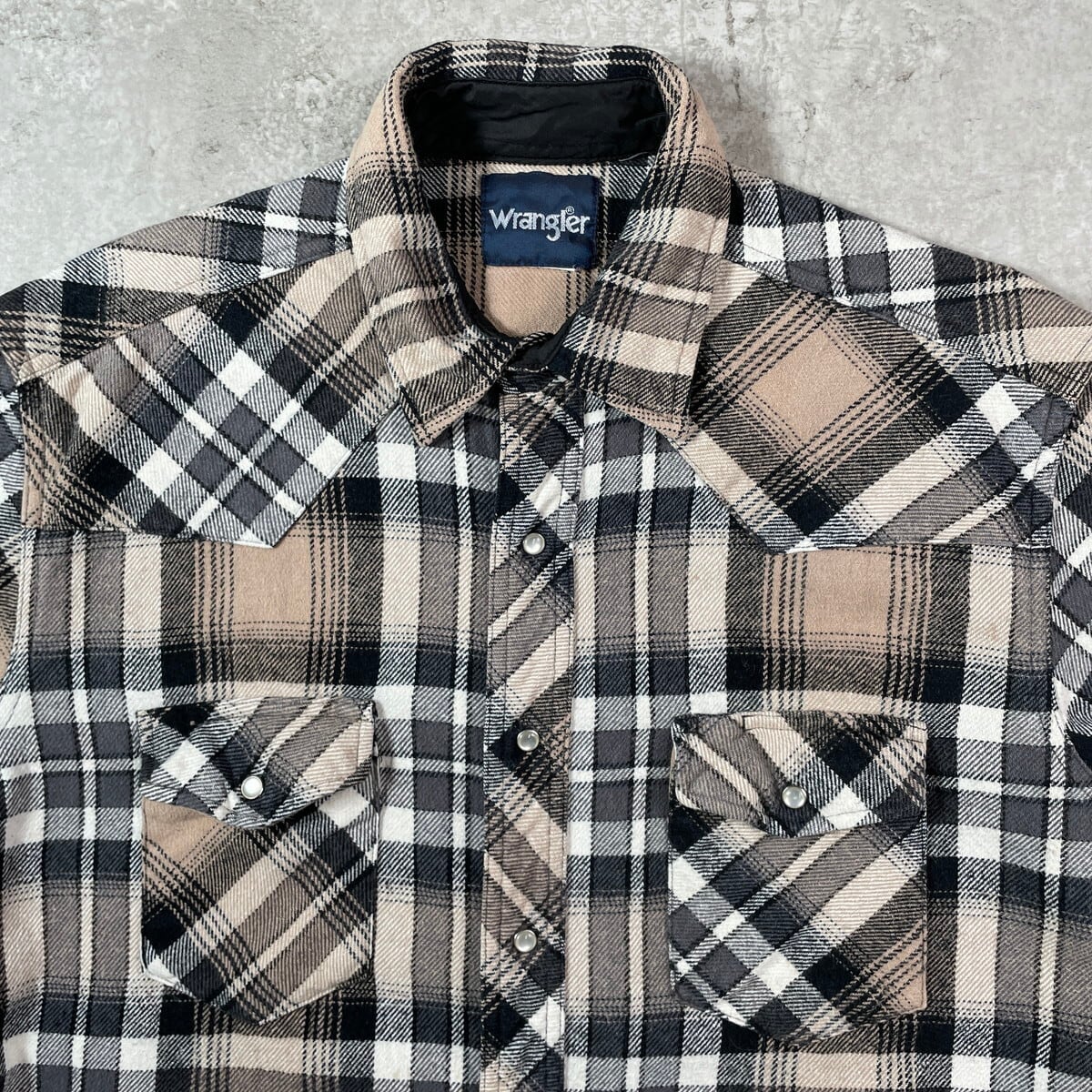 Wrangler ラングラー チェック ウエスタン ヘビーネルシャツ メンズL 古着 アメカジ ダブルポケット ベージュ ホワイト ブラック グレー【長袖シャツ】/マルチカラー