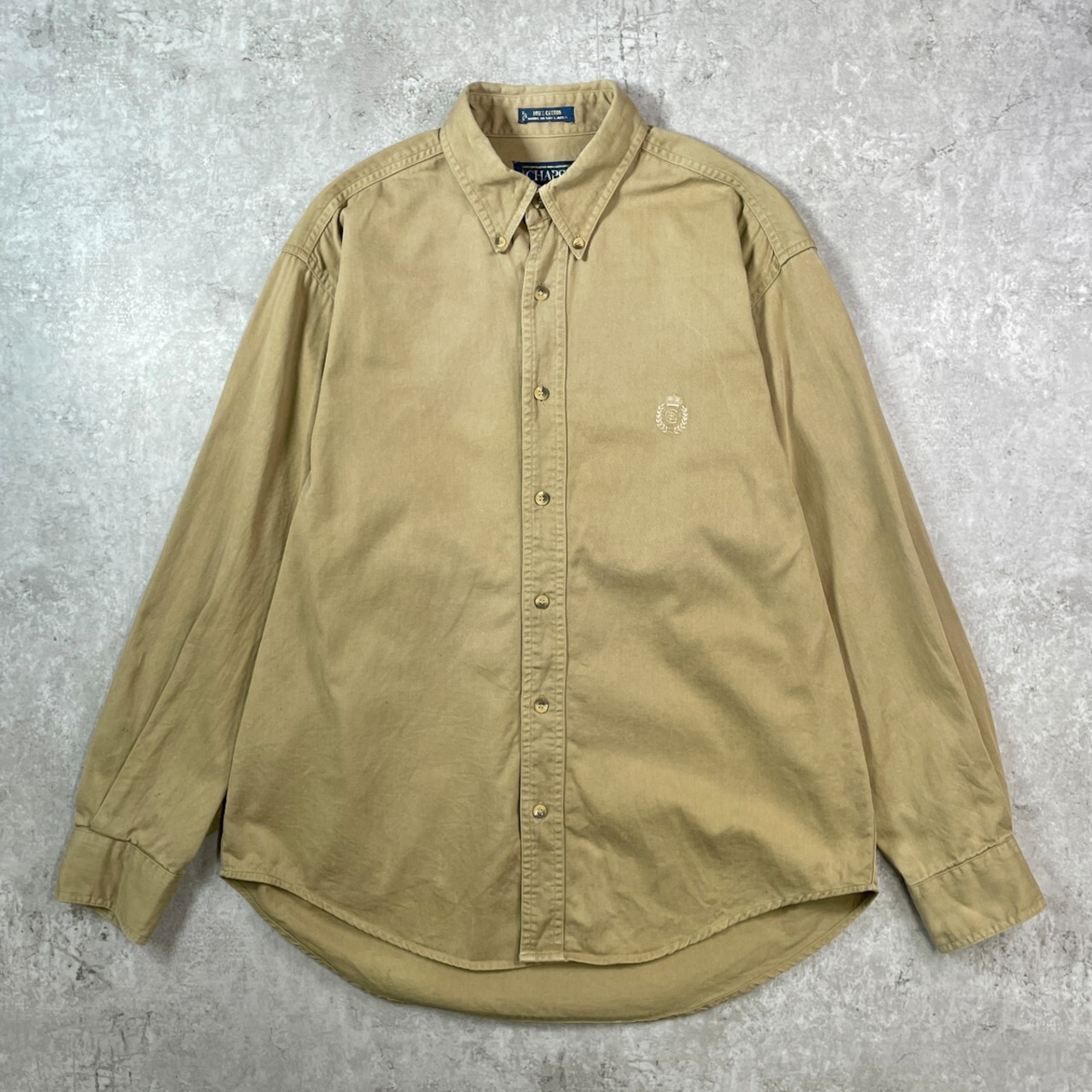 ■90年代 CHAPS Ralph Lauren チャップス ラルフローレン ワンポイントロゴ刺繡 ボタンダウンシャツ メンズL 古着 90s VINTAGE ヴィンテージ アメカジ B.D.シャツ 胸ポケ付き サンドベージュ 【長袖シャツ】/ベージュ