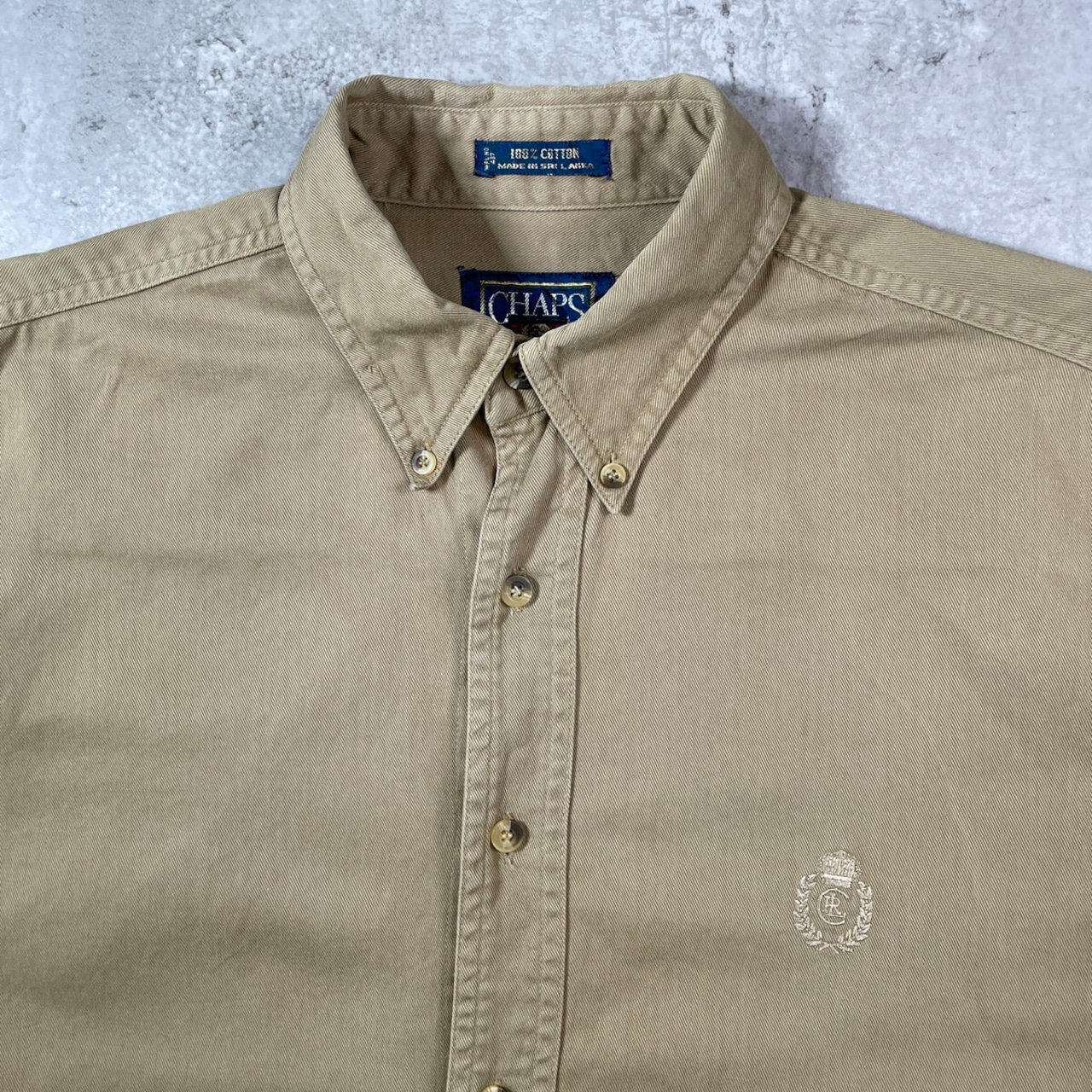 90年代 CHAPS Ralph Lauren チャップス ラルフローレン ワンポイントロゴ刺繡 ボタンダウンシャツ メンズL 古着 90s VINTAGE ヴィンテージ アメカジ B.D.シャツ 胸ポケ付き サンドベージュ 【長袖シャツ】/ベージュ