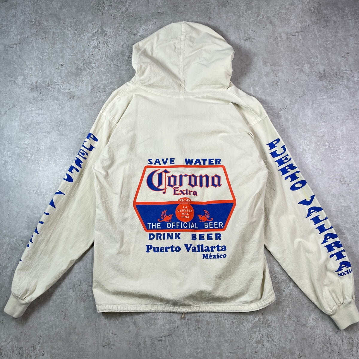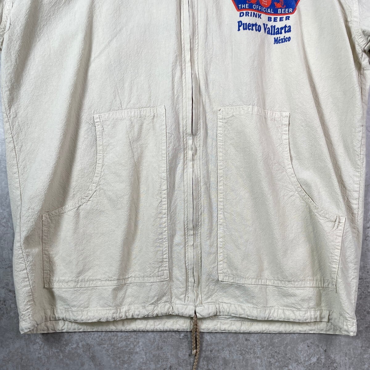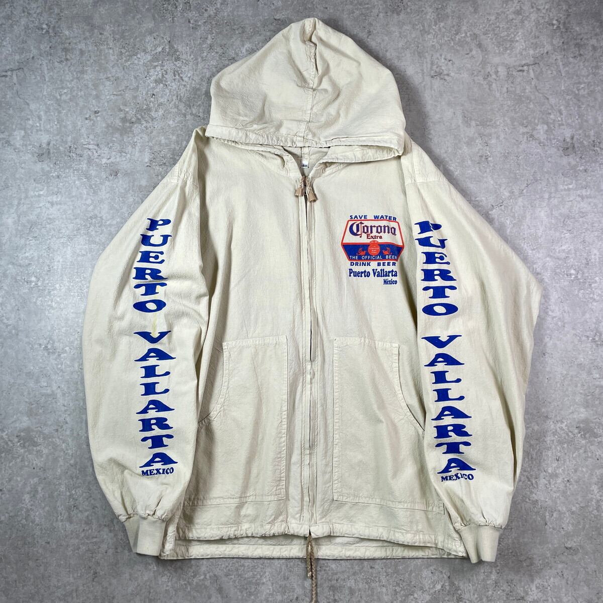 ■90~00年代 Corona コロナビール ジップ コットンビーチパーカー メンズL相当 古着 90s 00s Y2K ヴィンテージ VINTAGE メキシコ スーベニア アドバタイジング バックプリント お酒 ライトベージュ【パーカー】/ベージュ