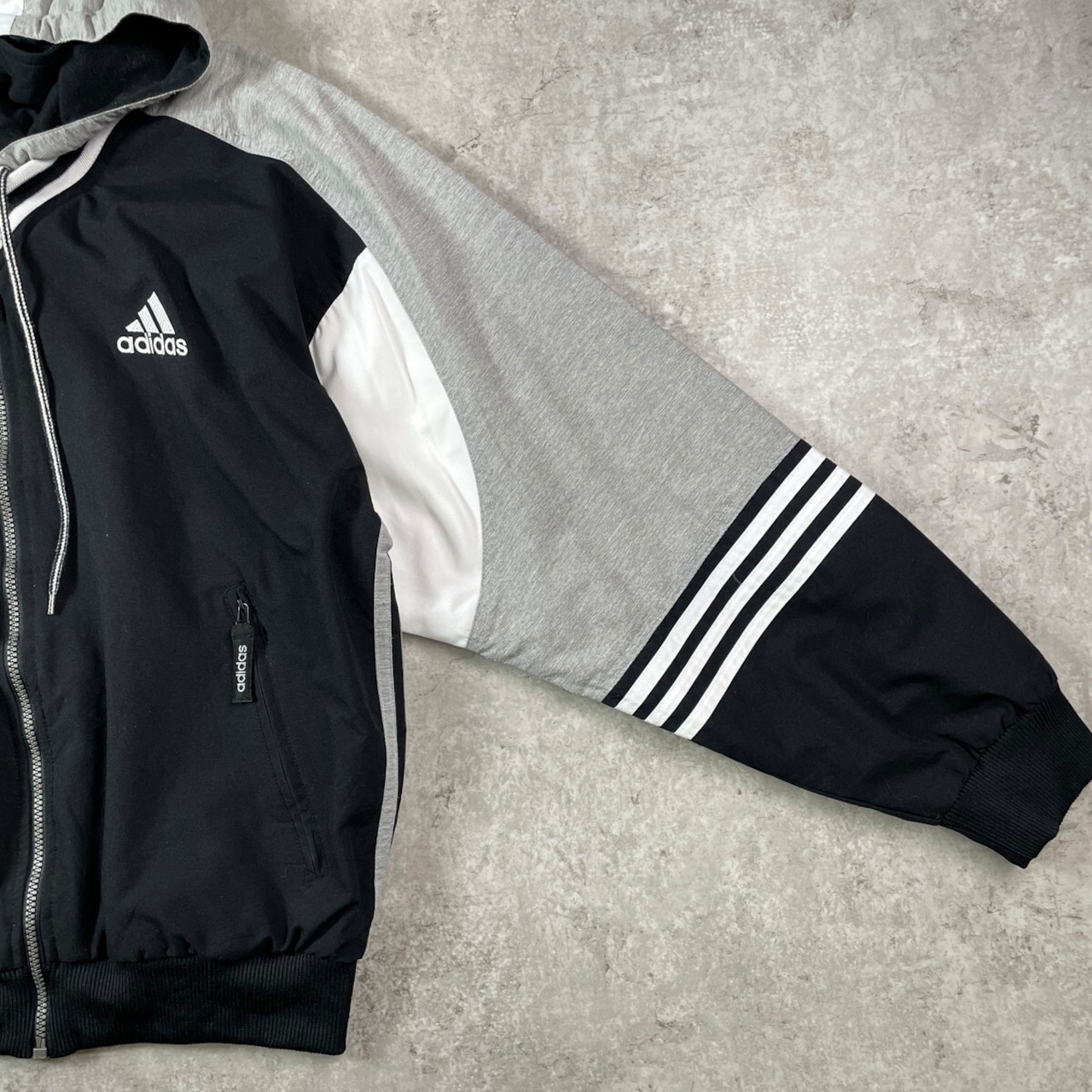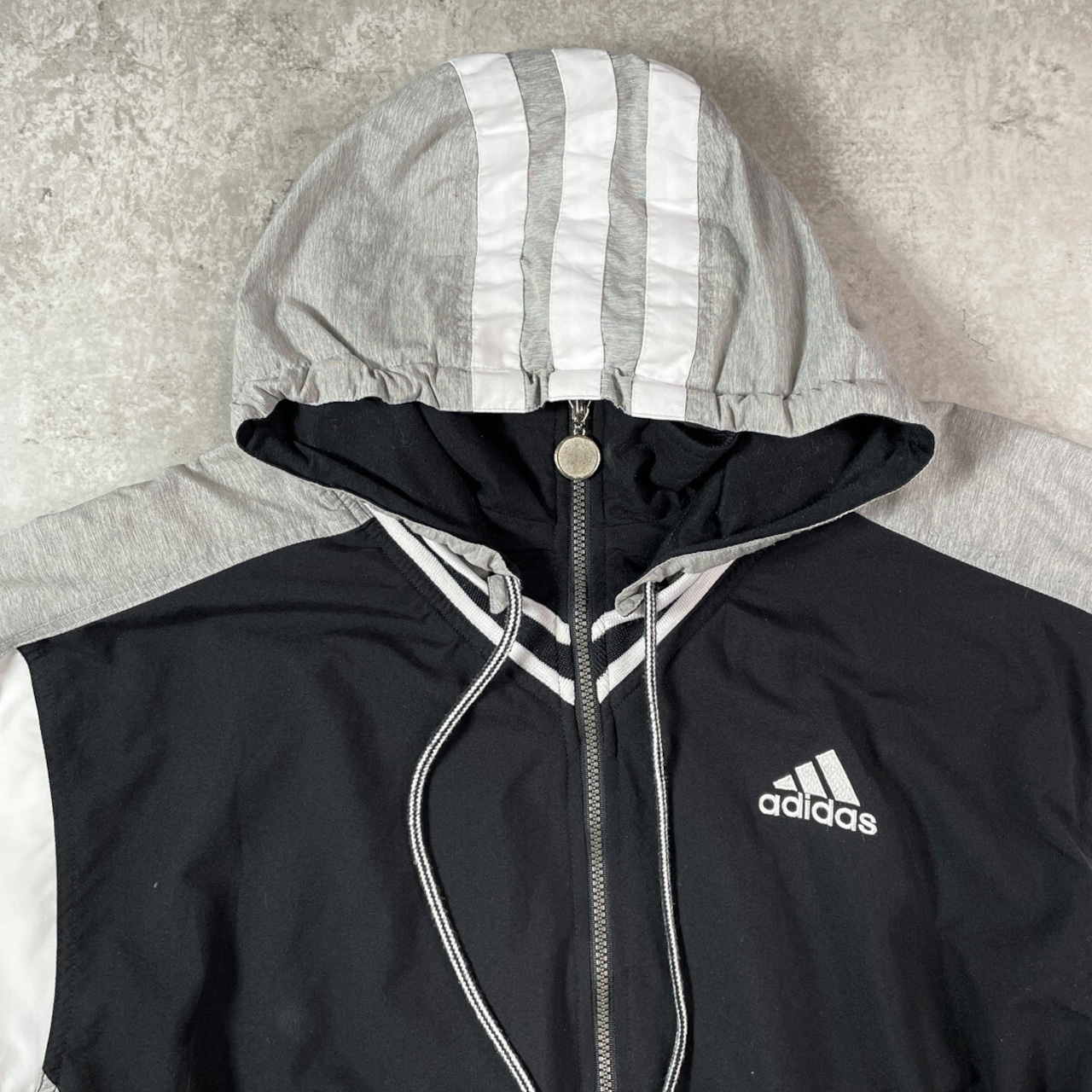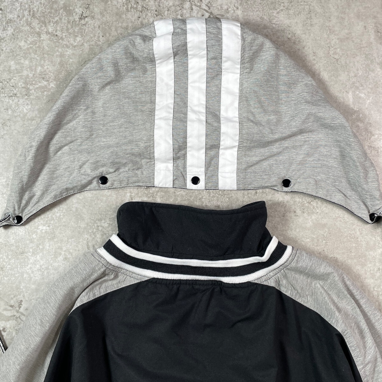 90年代 adidas アディダス トラックジャケット パフォーマンスロゴ メンズL相当 古着 90s ヴィンテージ VINTAGE フード着脱式 ブラック グレー ホワイト【ナイロンジャケット】/マルチカラー