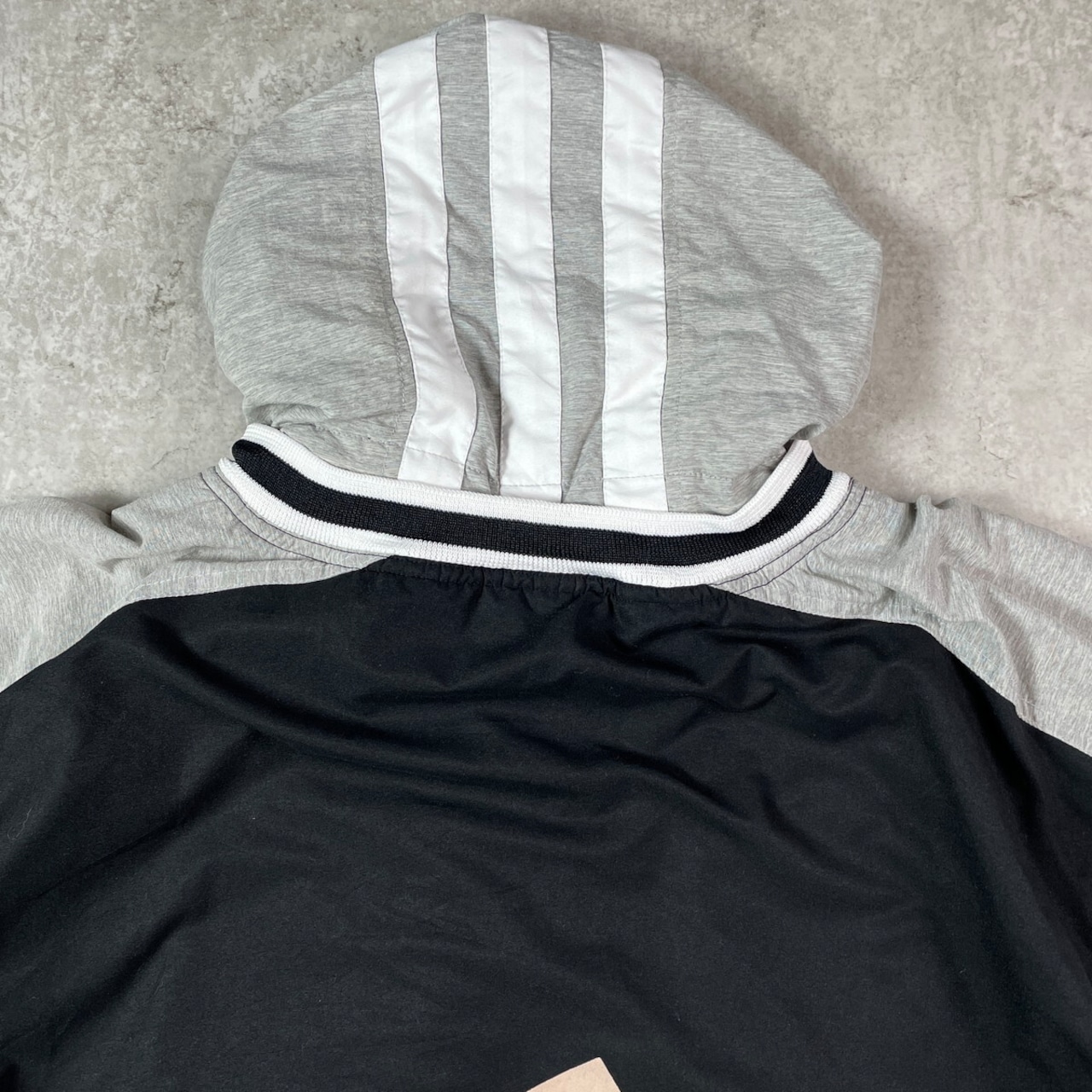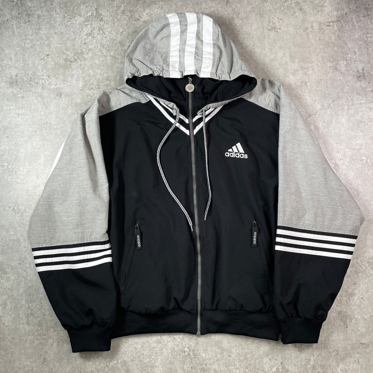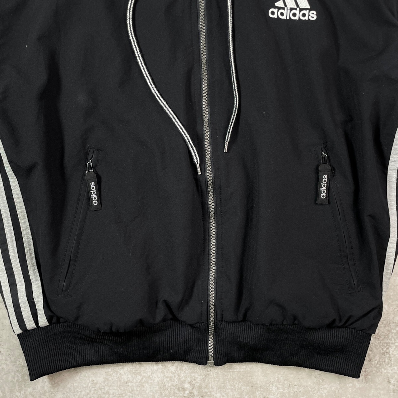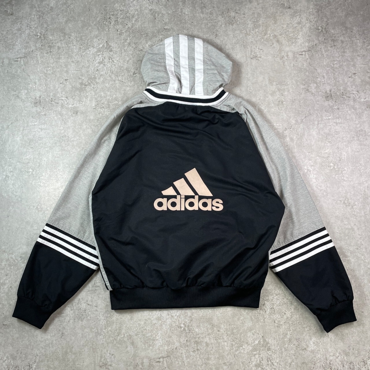 90年代 adidas アディダス トラックジャケット パフォーマンスロゴ メンズL相当 古着 90s ヴィンテージ VINTAGE フード着脱式 ブラック グレー ホワイト【ナイロンジャケット】/マルチカラー