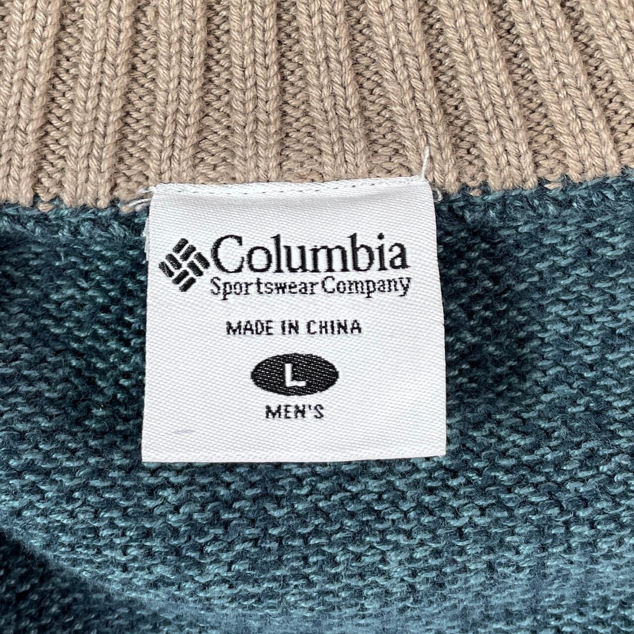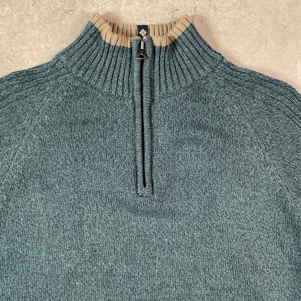 ■Columbia コロンビア ハーフジップ コットンニットセーター メンズL 古着 ハイネック ブルーグリーン【ニットセーター】/ブルー