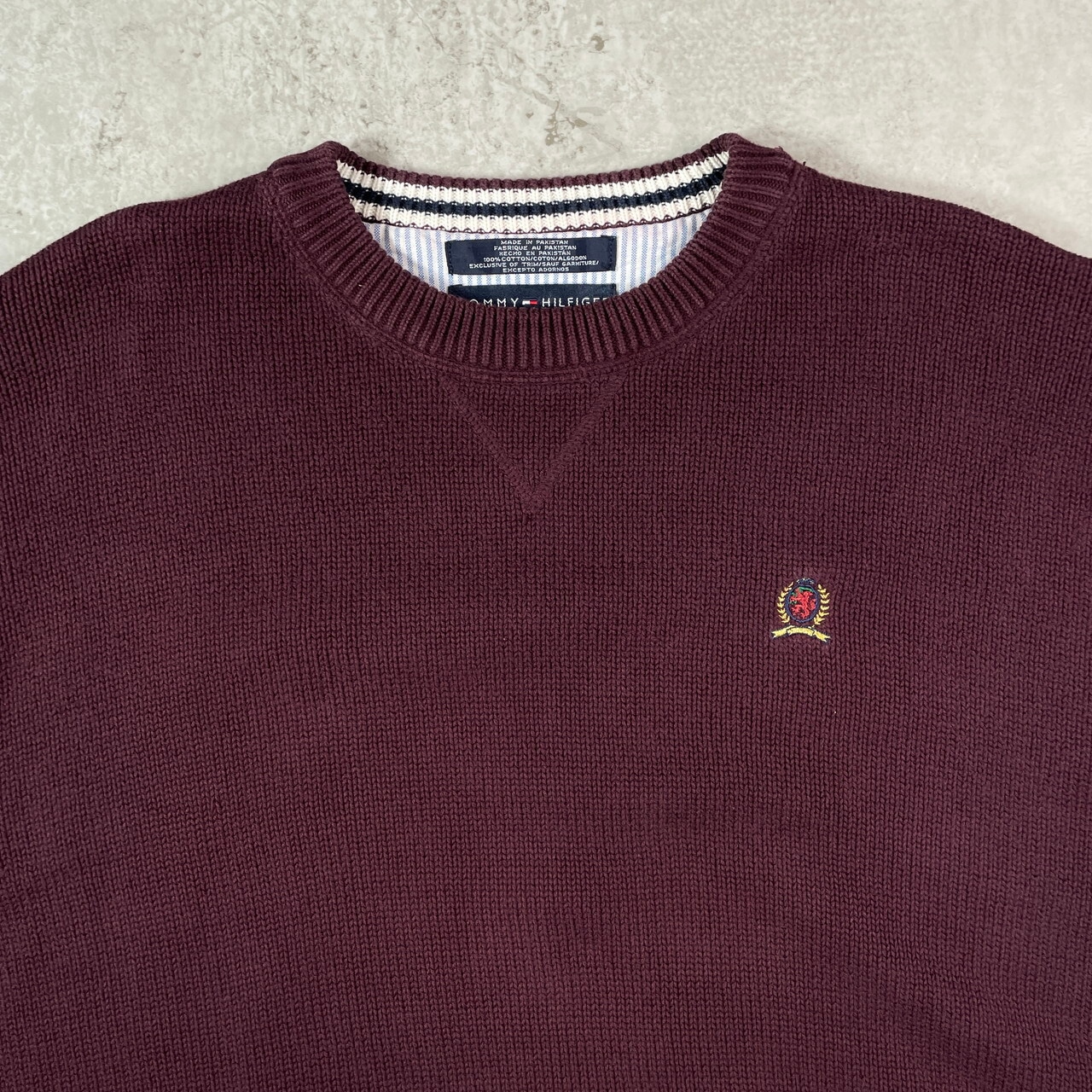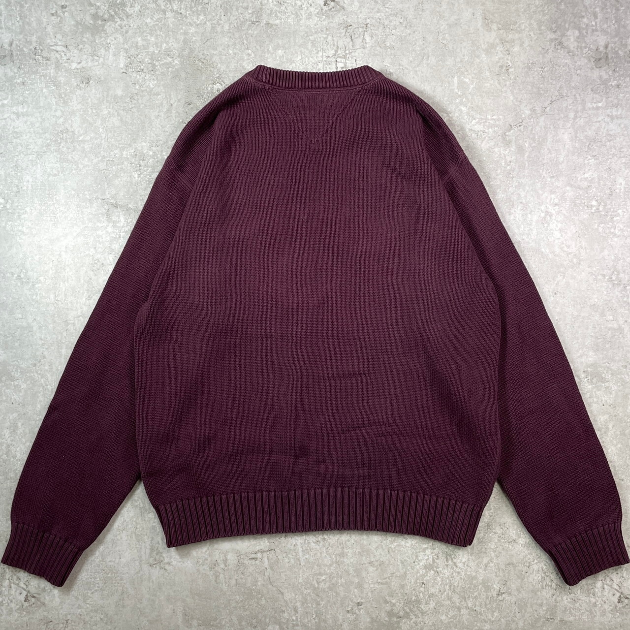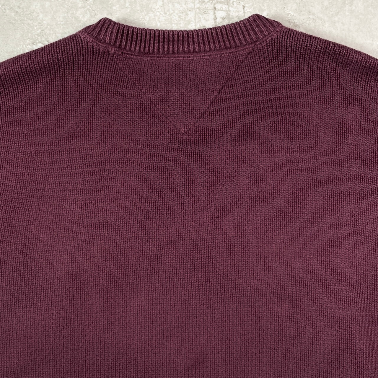 00年代 TOMMY HILFIGER トミーヒルフィガー ワンポイントロゴ刺繍 コットンニットセーター メンズL 古着 00s VINTAGE ヴィンテージ 前Vガゼット【ニットセーター】/ワインレッド